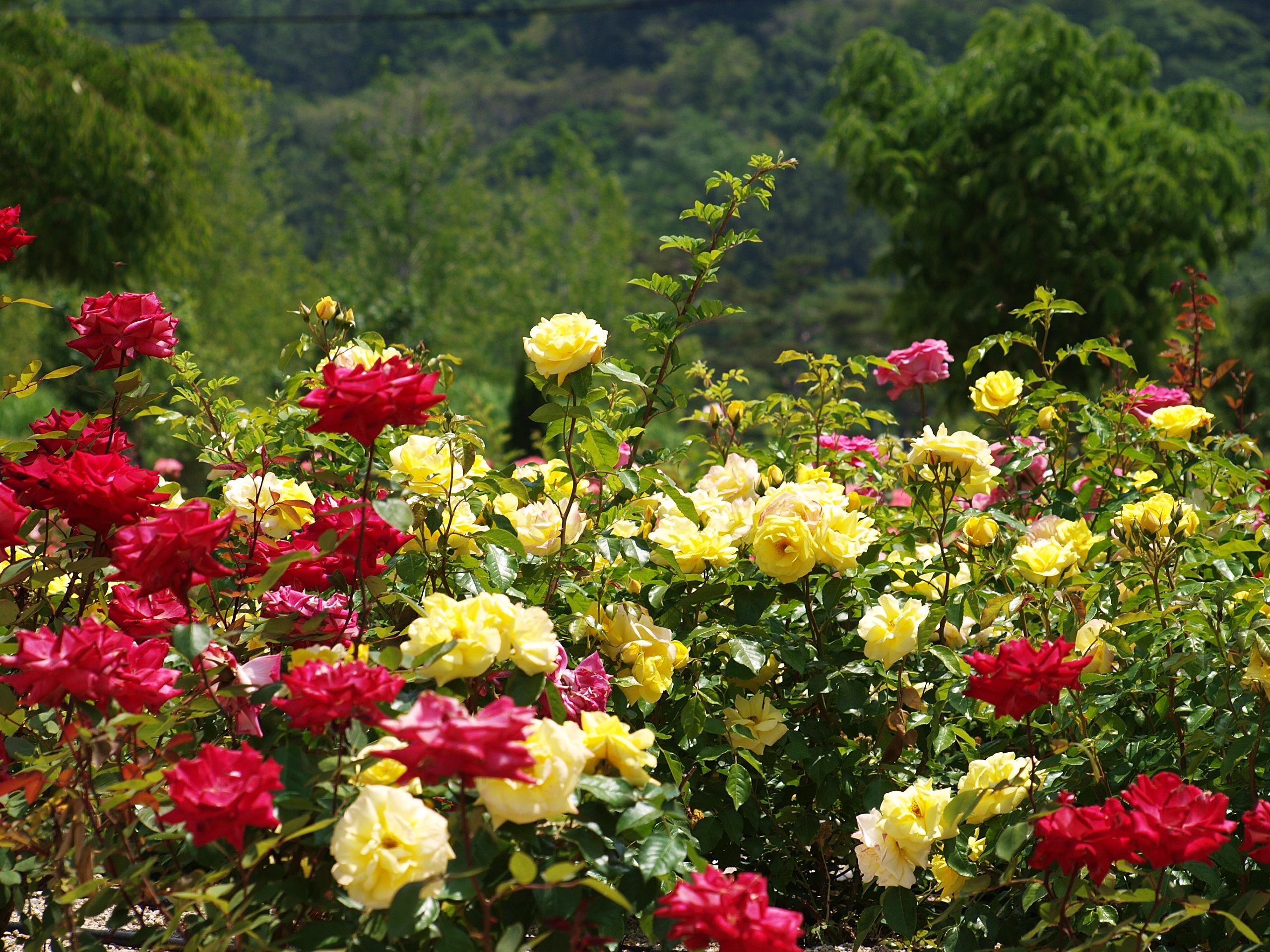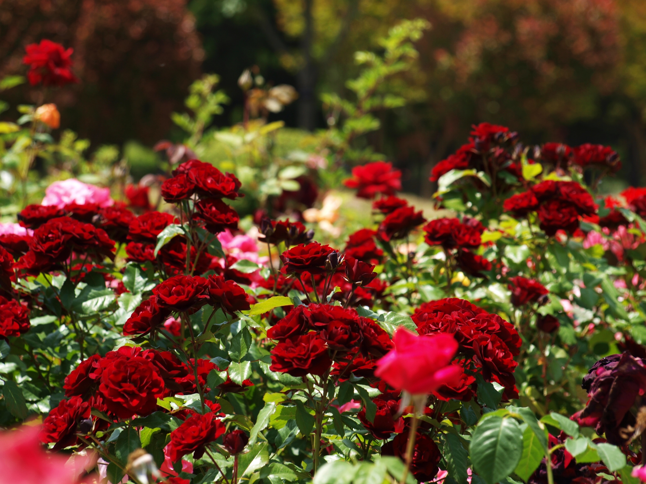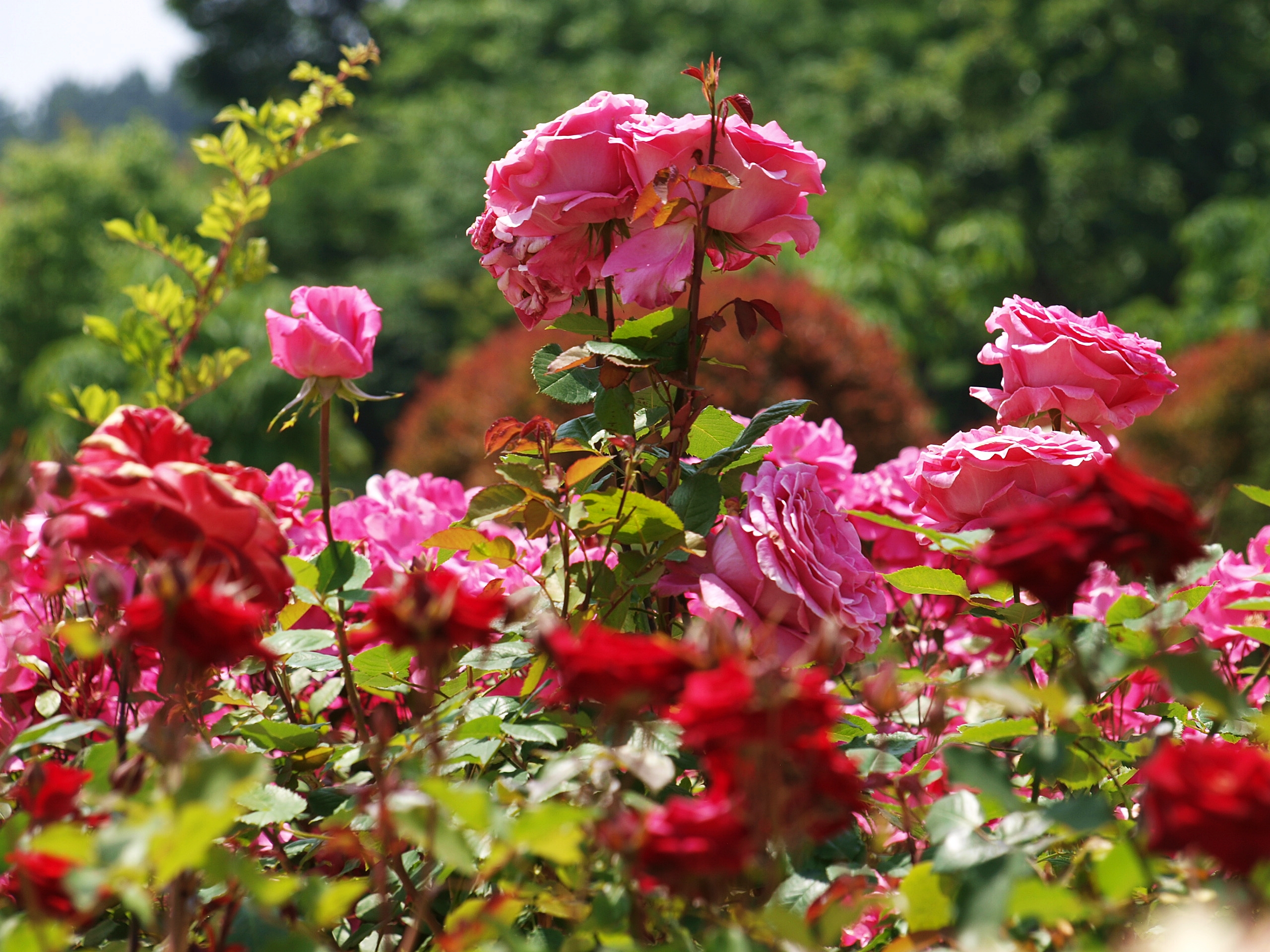 다양한 색과 모양으로 핀 장미꽃