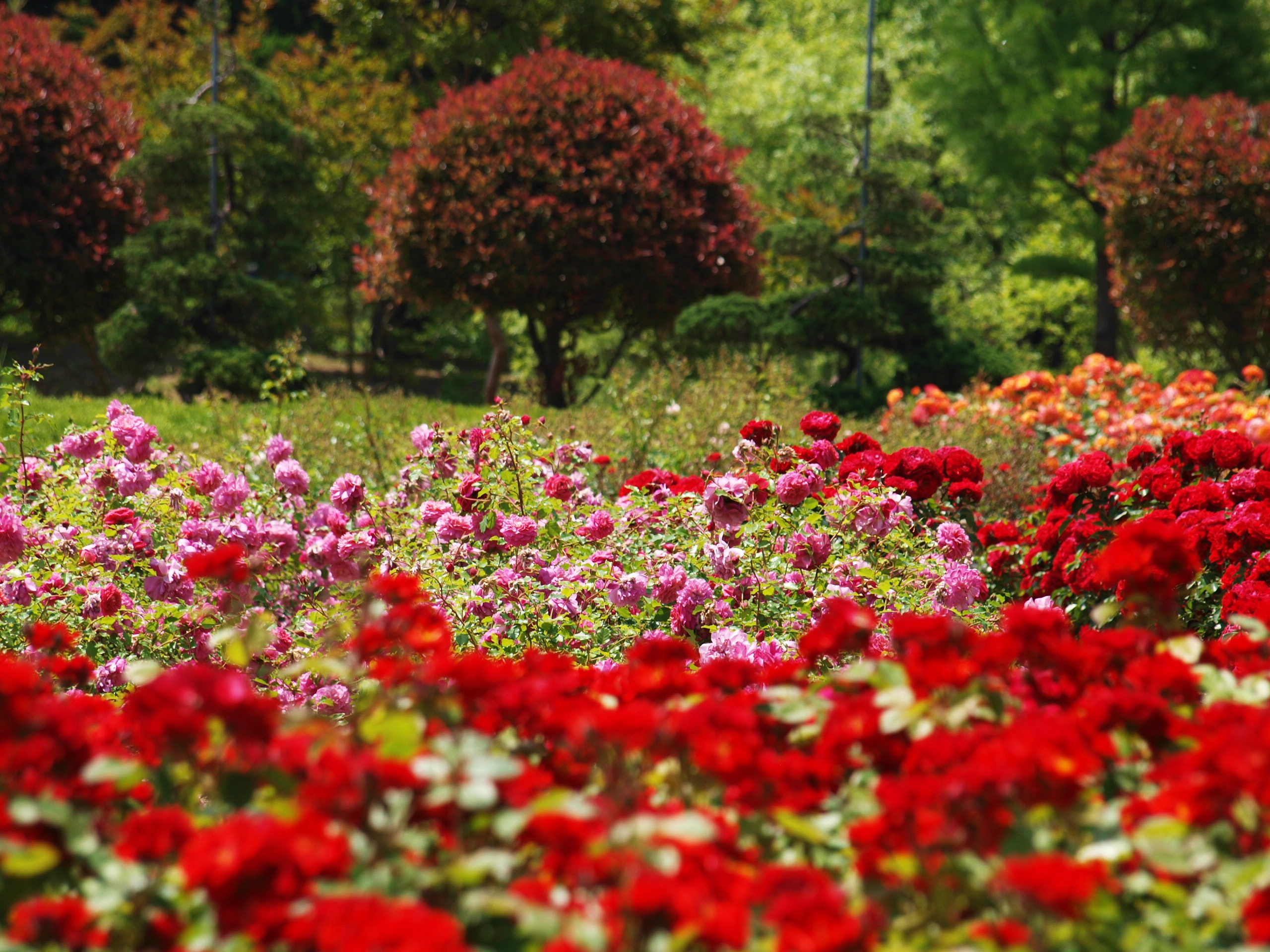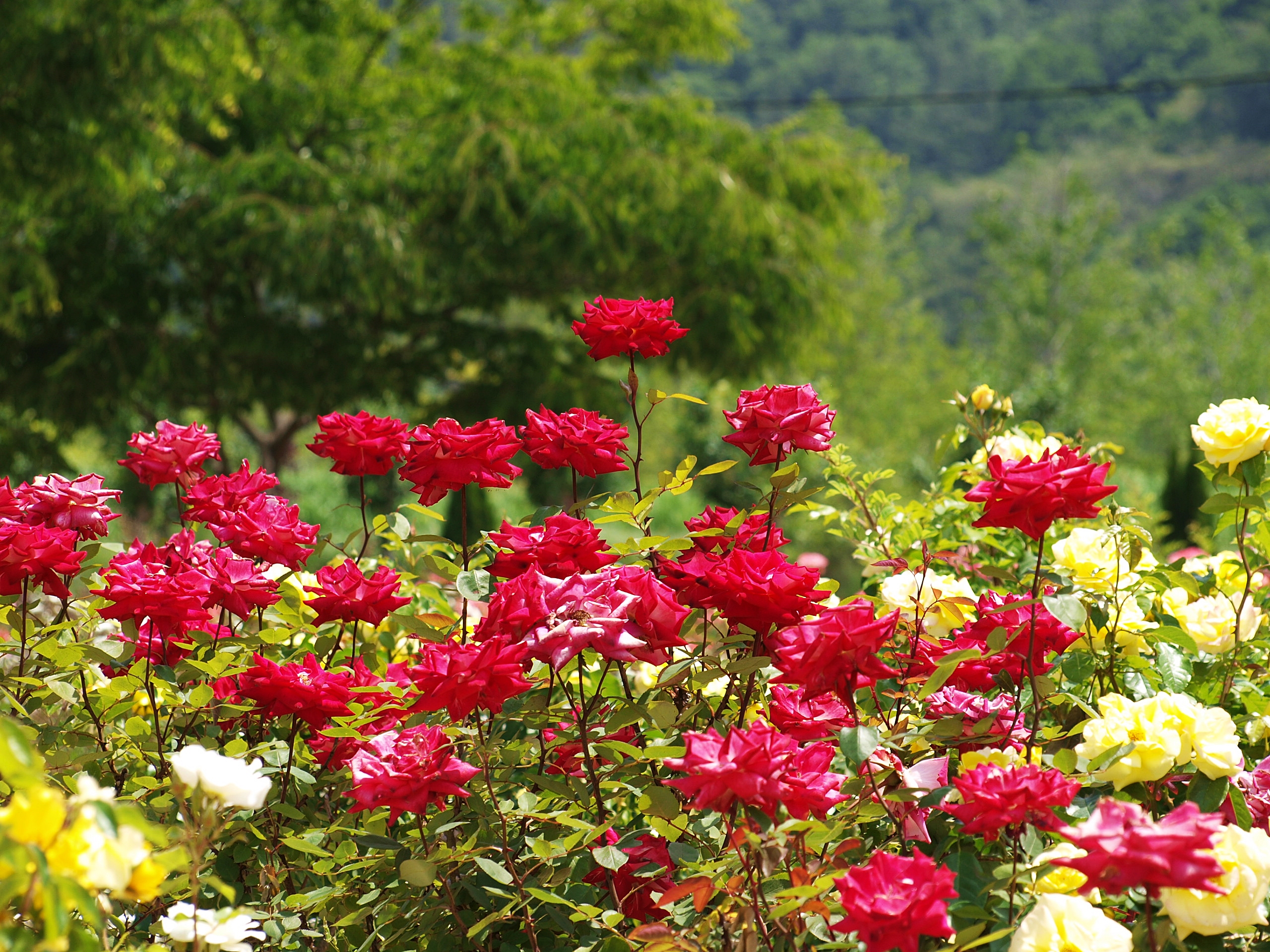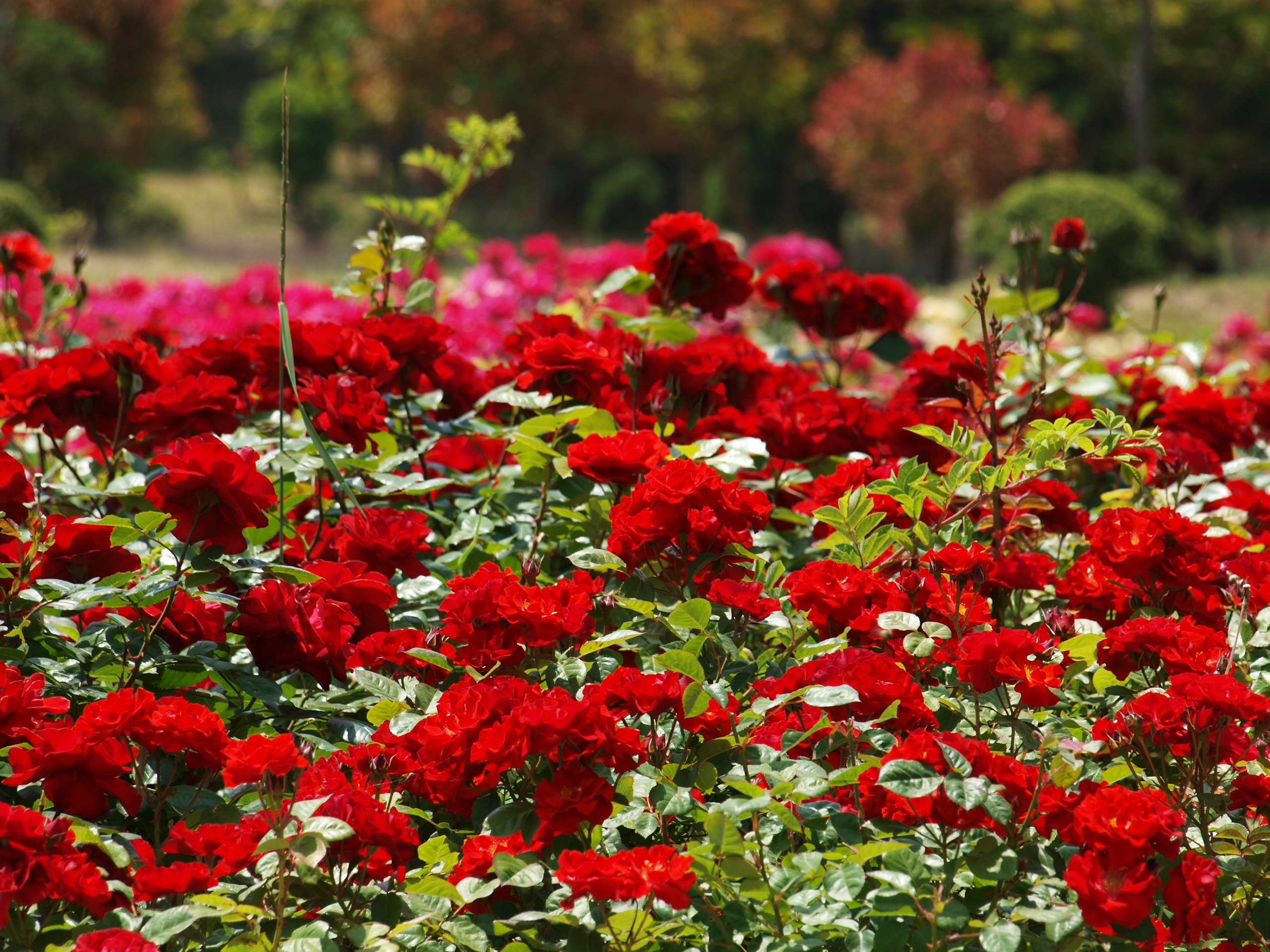 다양한 색과 모양으로 핀 장미꽃