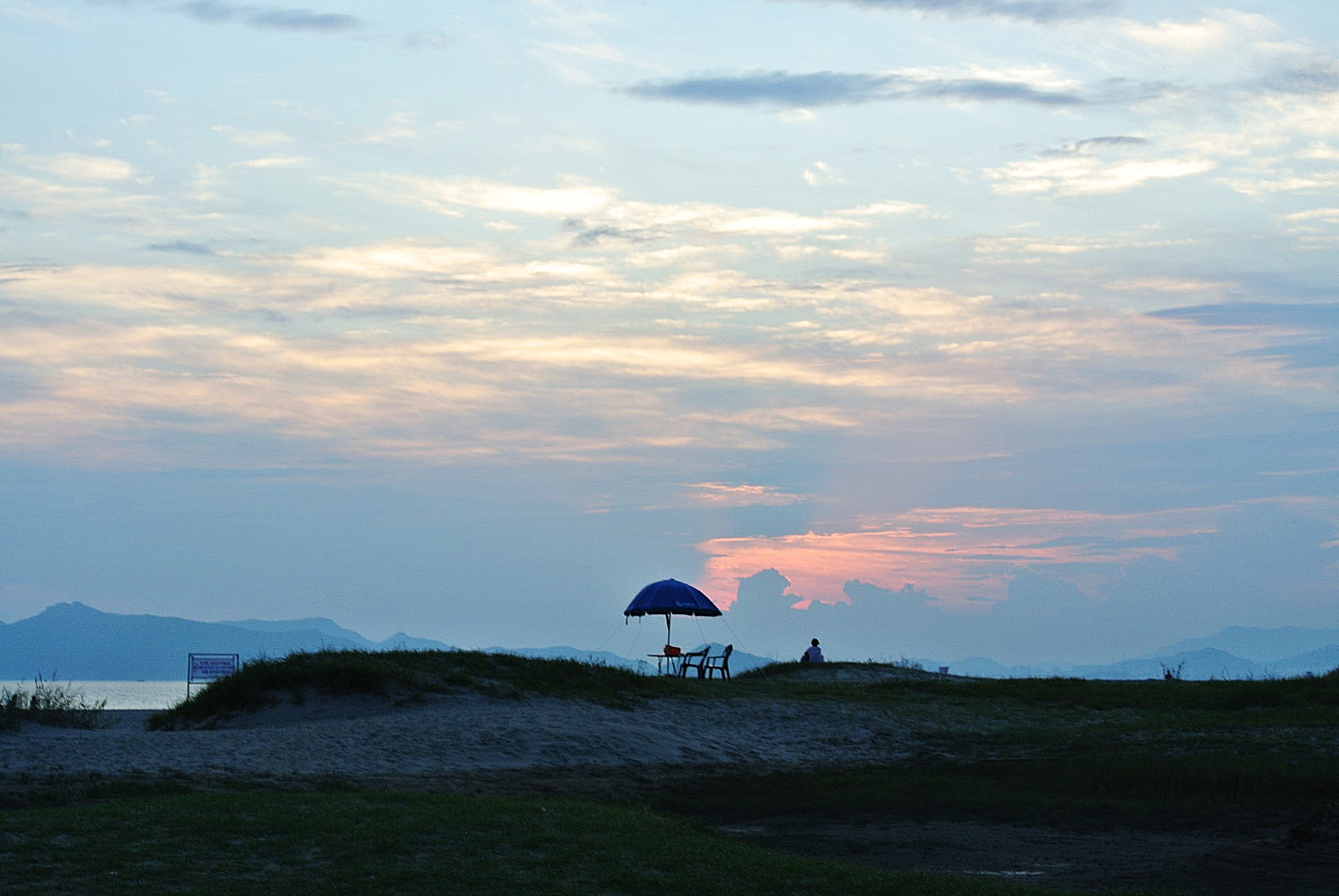 낙조의 빛이 강렬하지 못하고 너무 약해서 만족하지 못하고