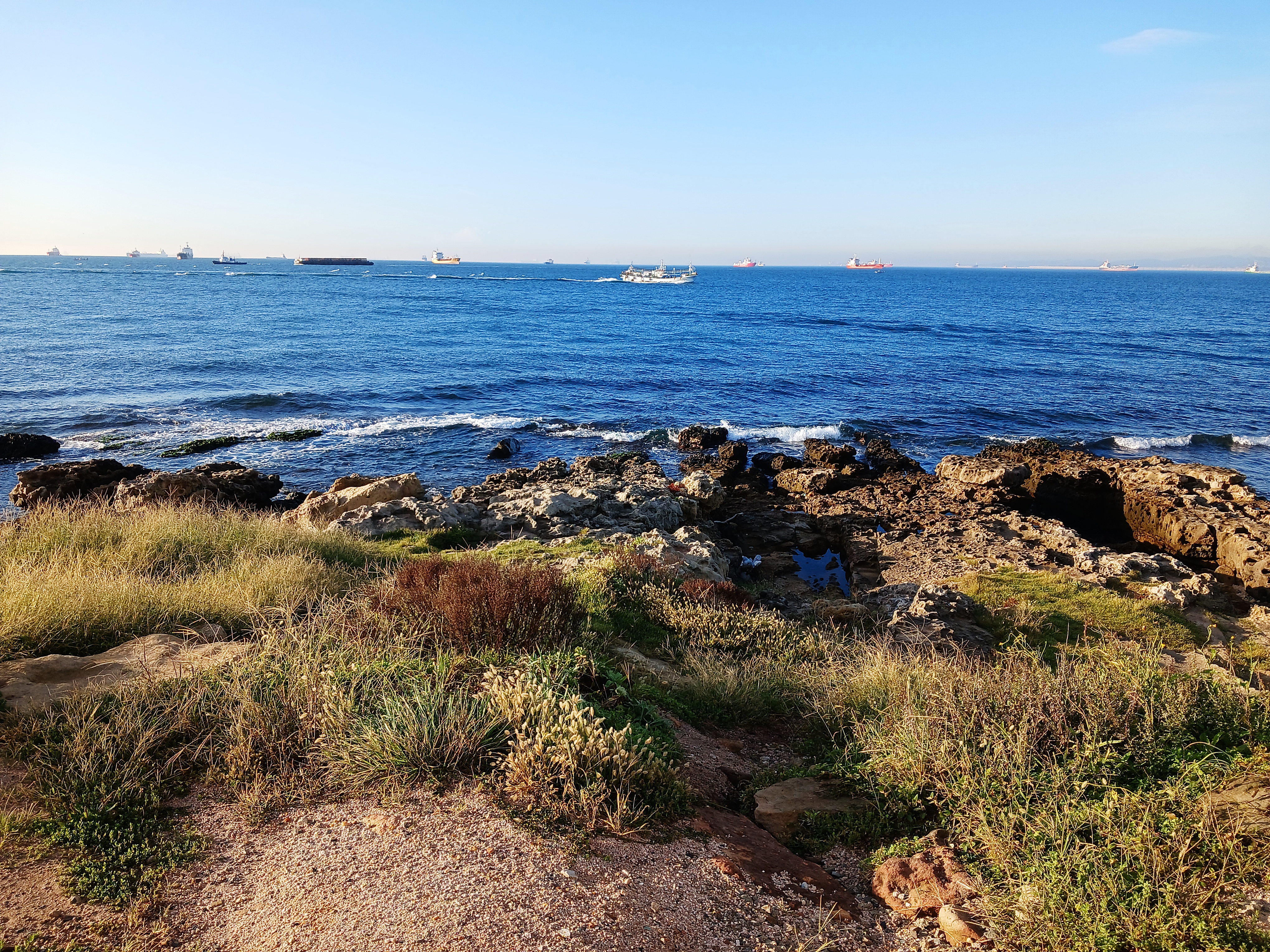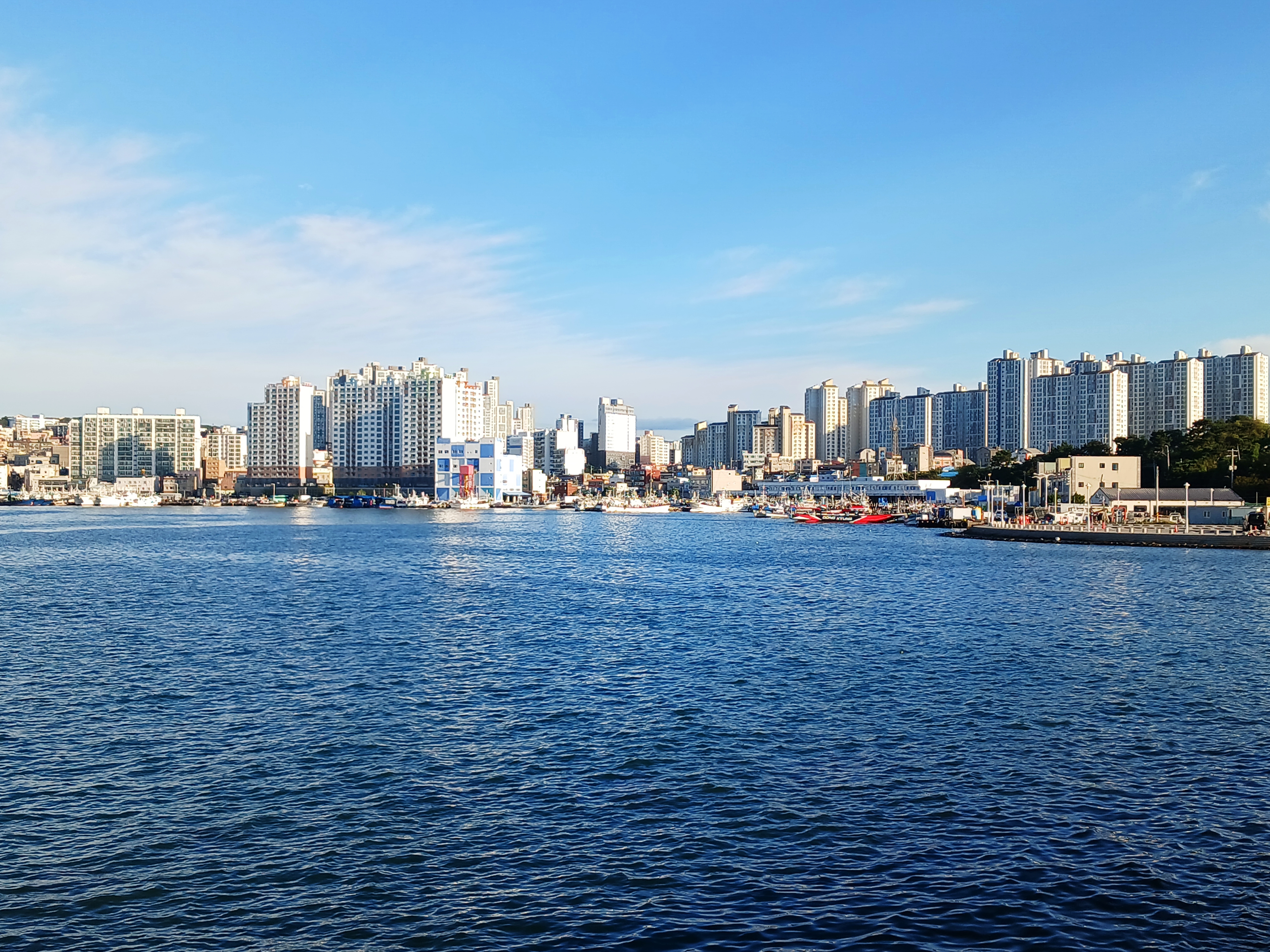 커다란 배들이 뿌웅~하는 배고동소리를 내며 줄지어 지나가는데... 그것도 장관이었다