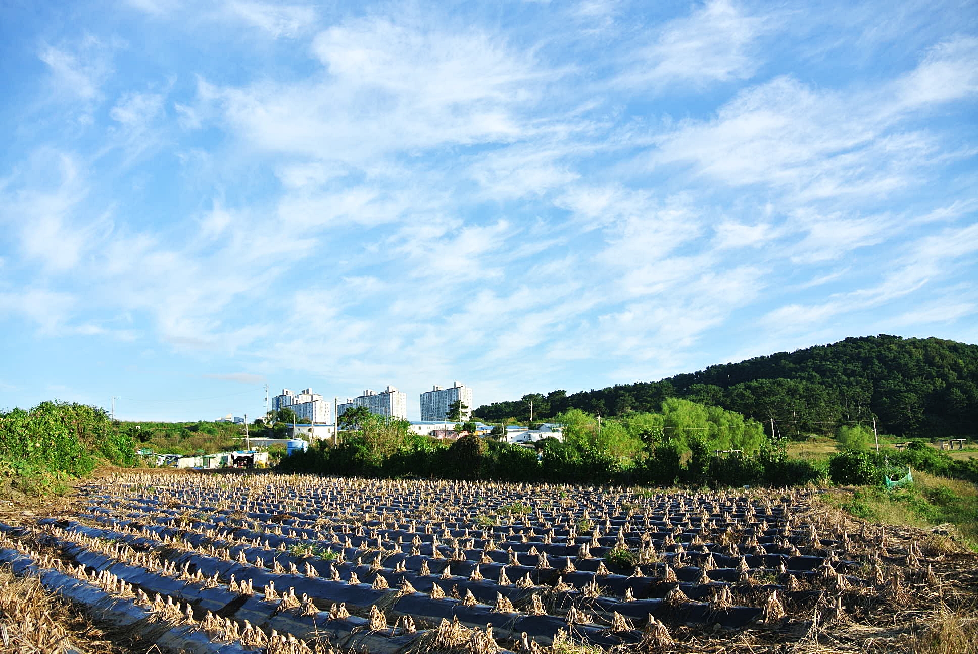 옥수수대 잘라낸 밭과 하늘이 너무 예뻐서 담아보고