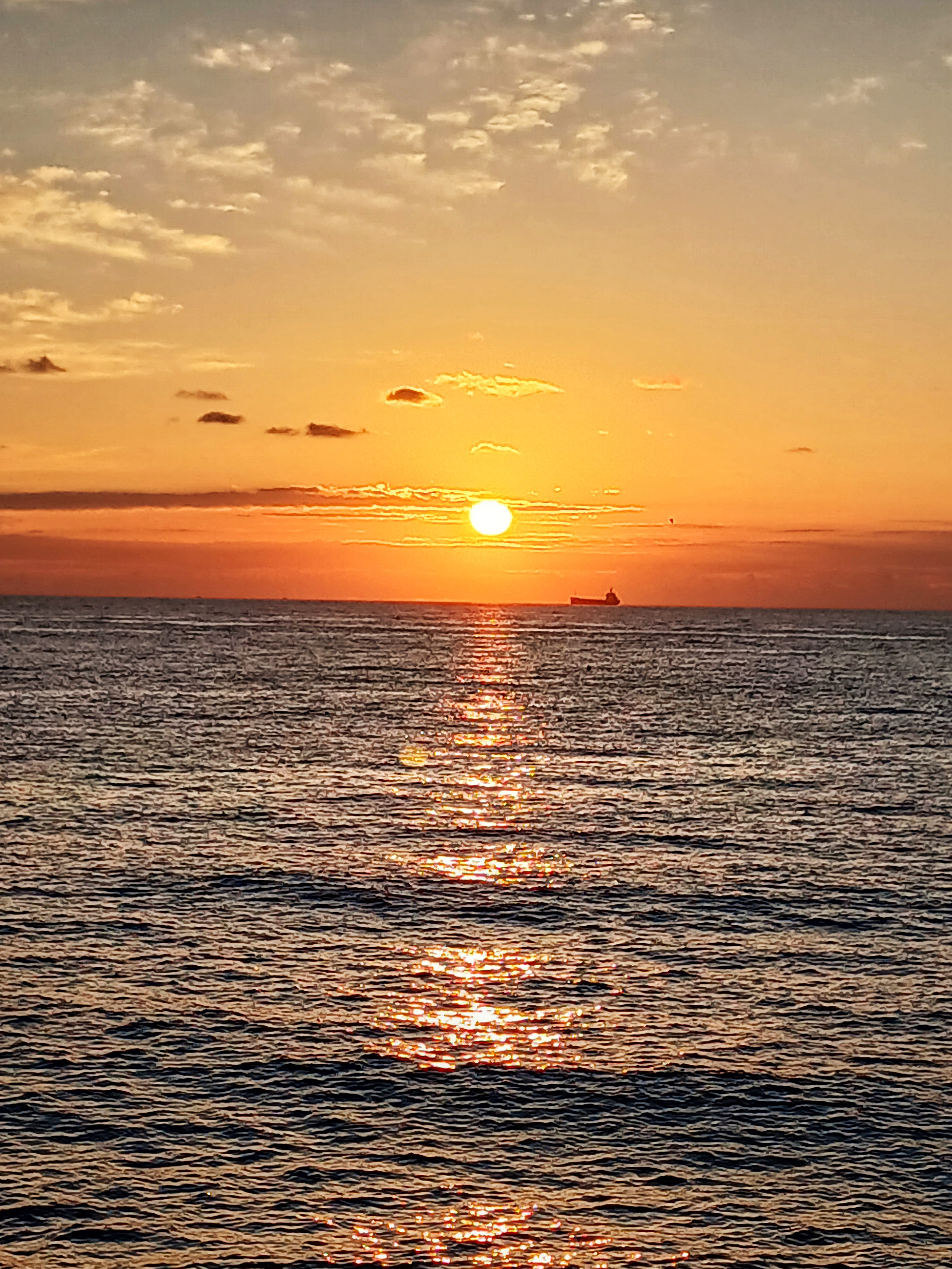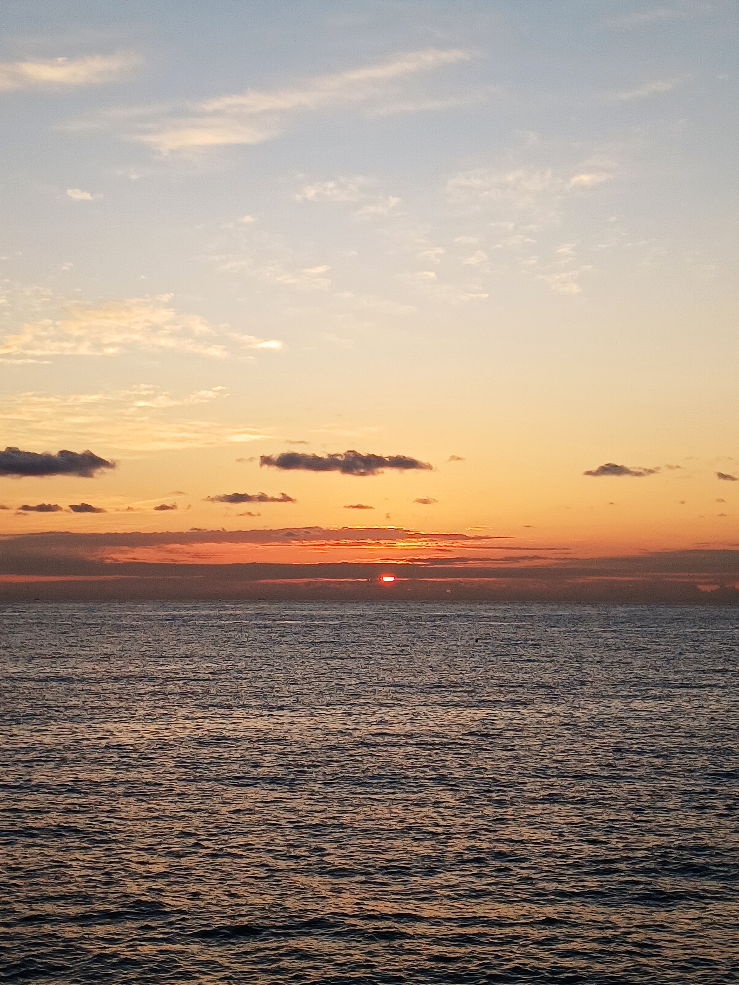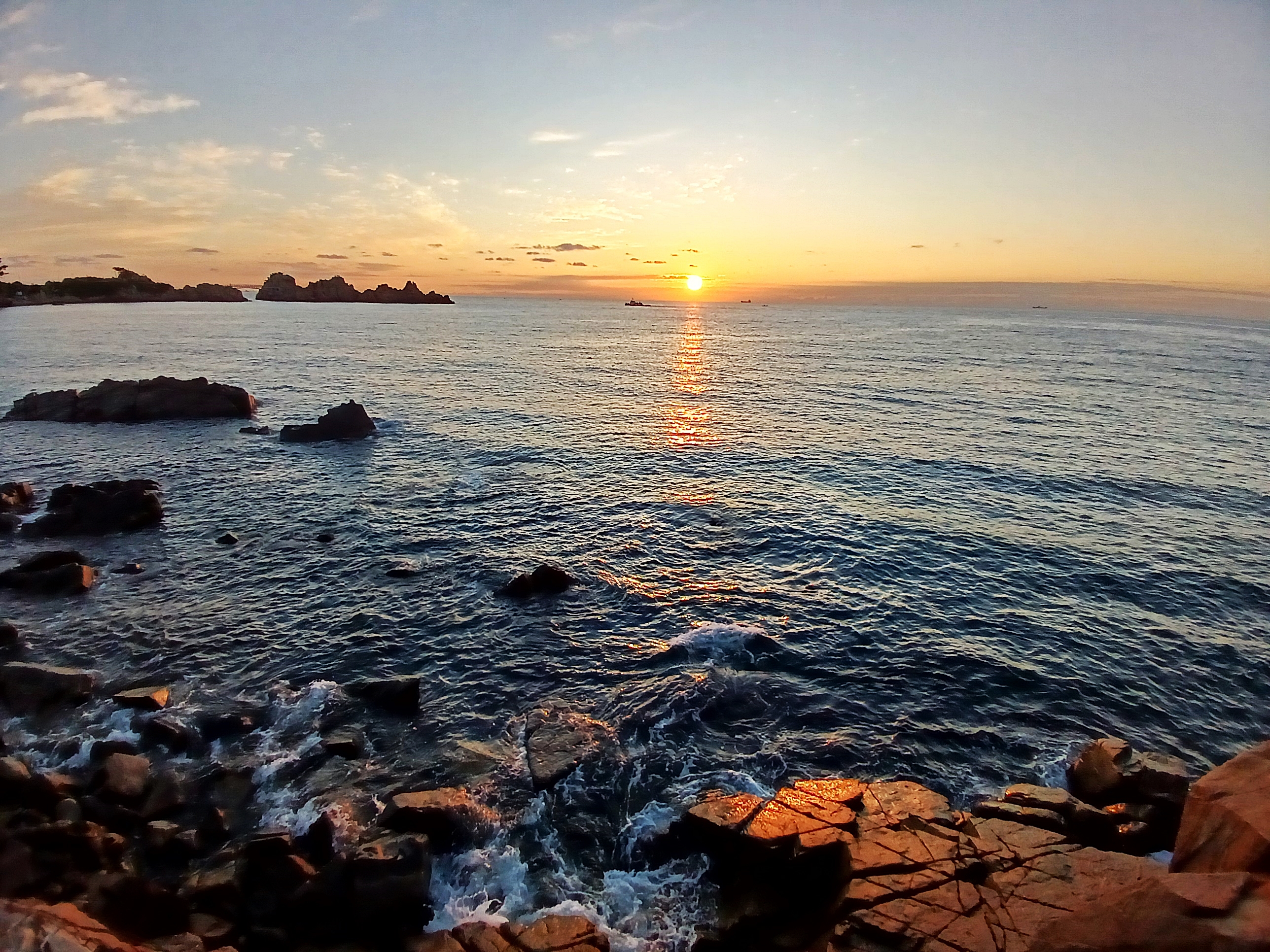 다시 들어가 5시50분 되어 해변으로 나와 일출을 기다려 본다.