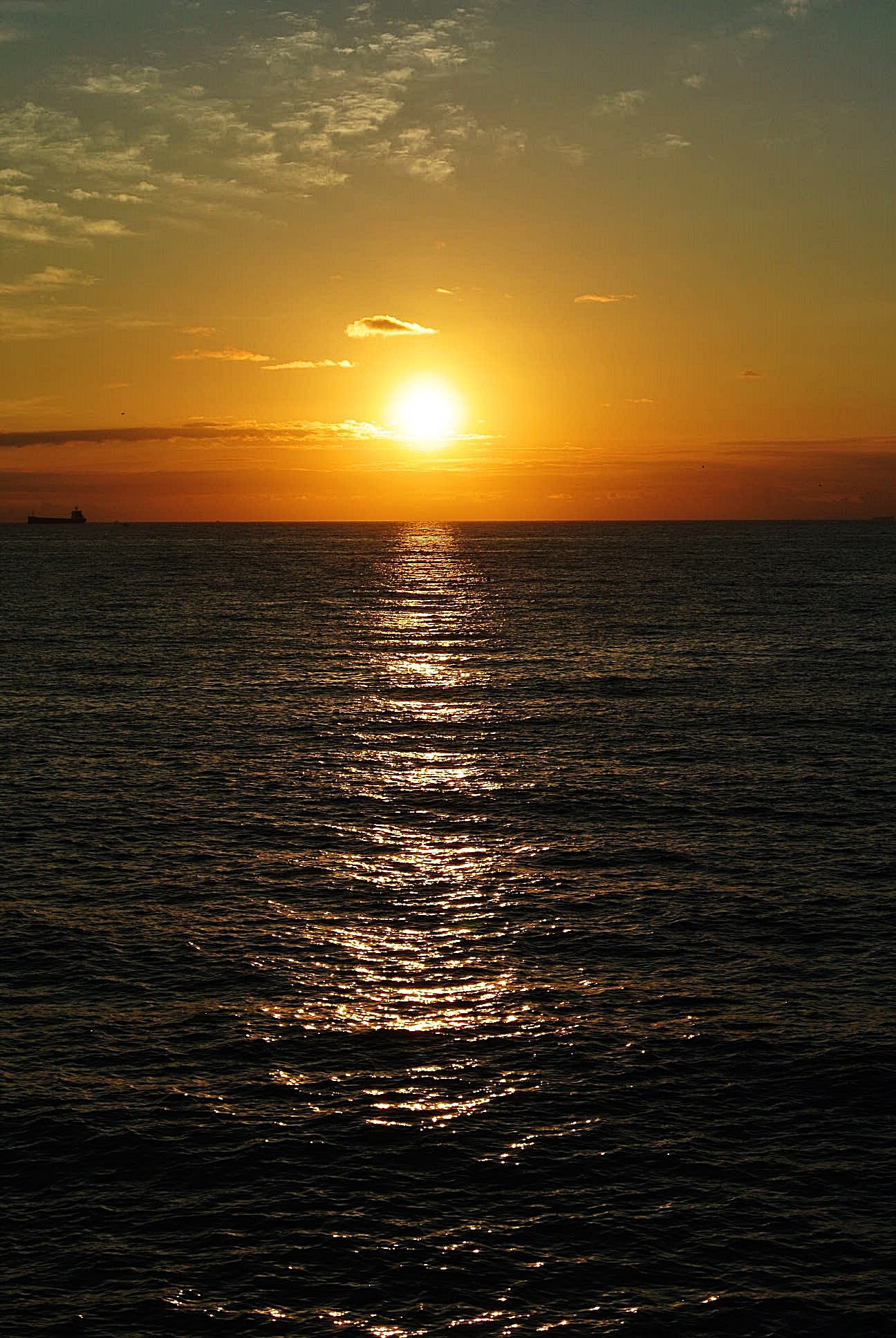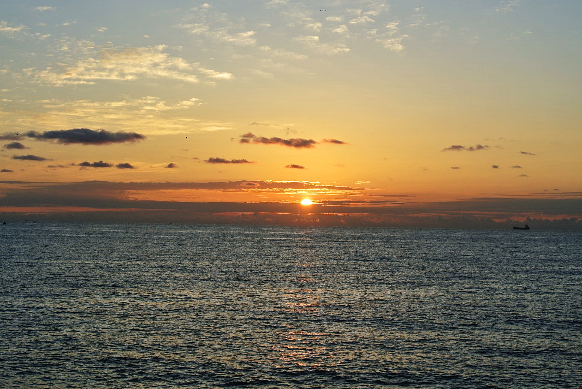 해가 떠오르면서 바다 전체를 붉게 물들이고
