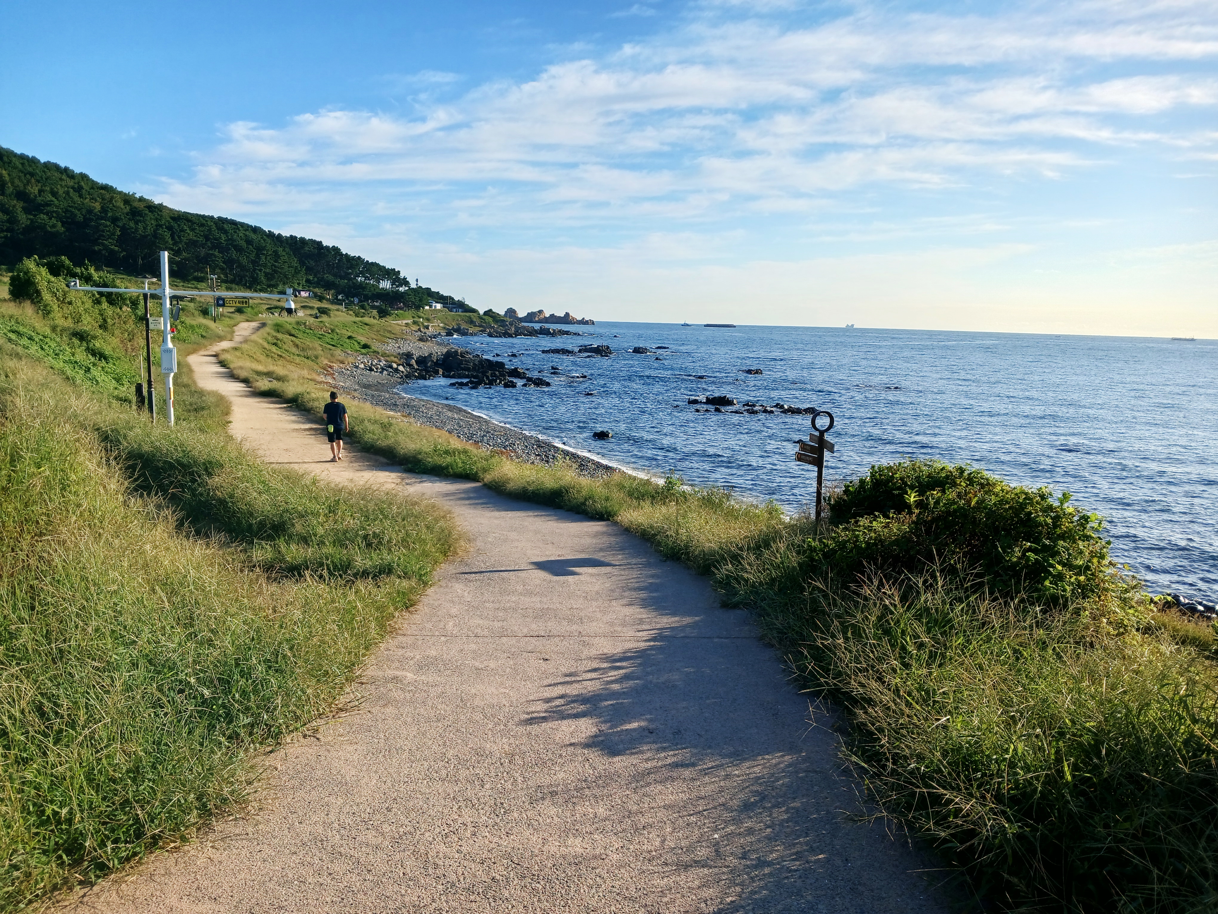 햇살이 전체에 퍼지면서 아침산책 슬도까지 걸어간다
