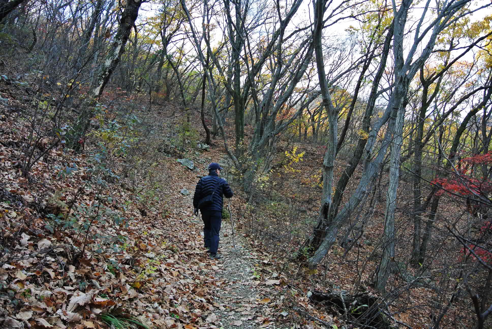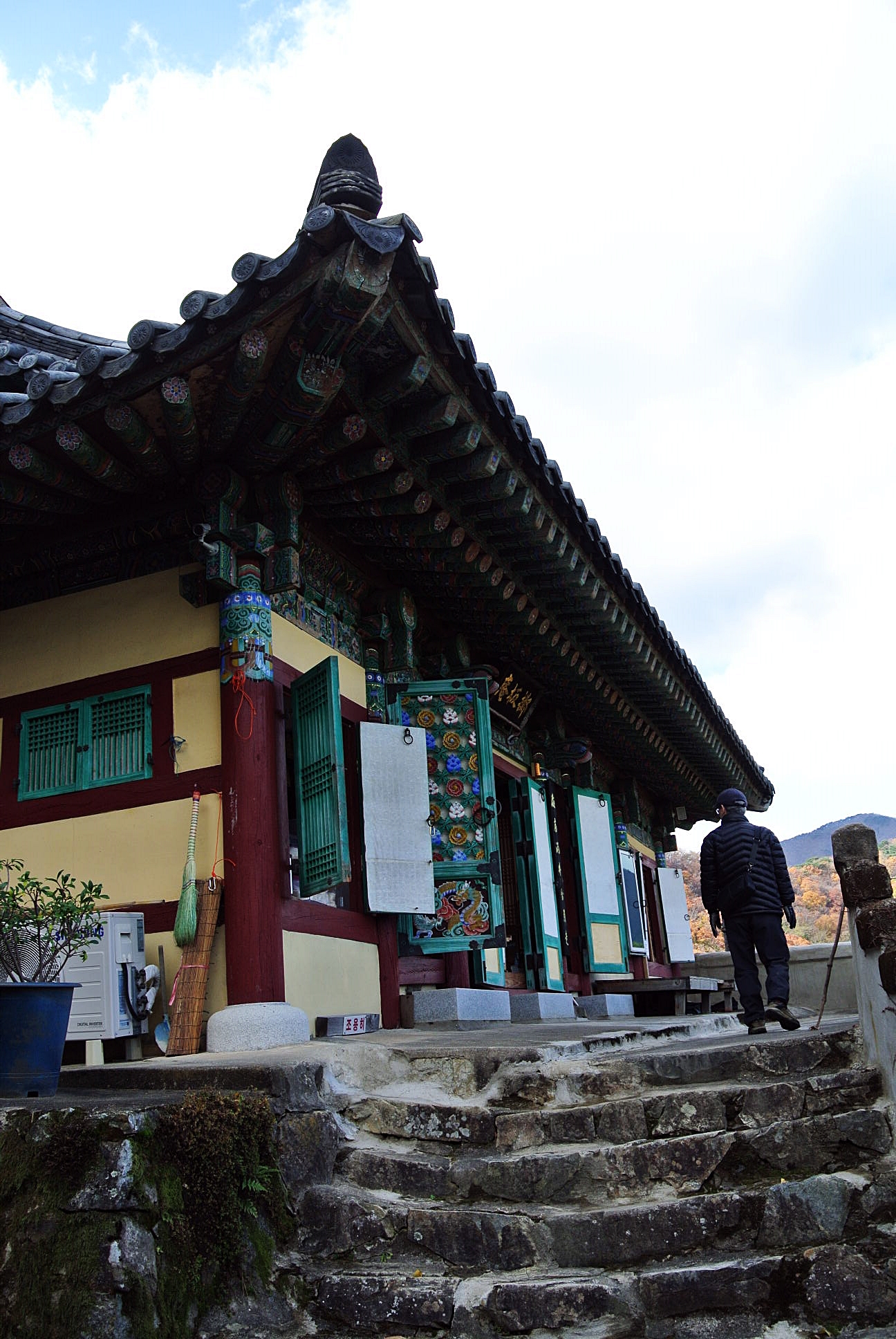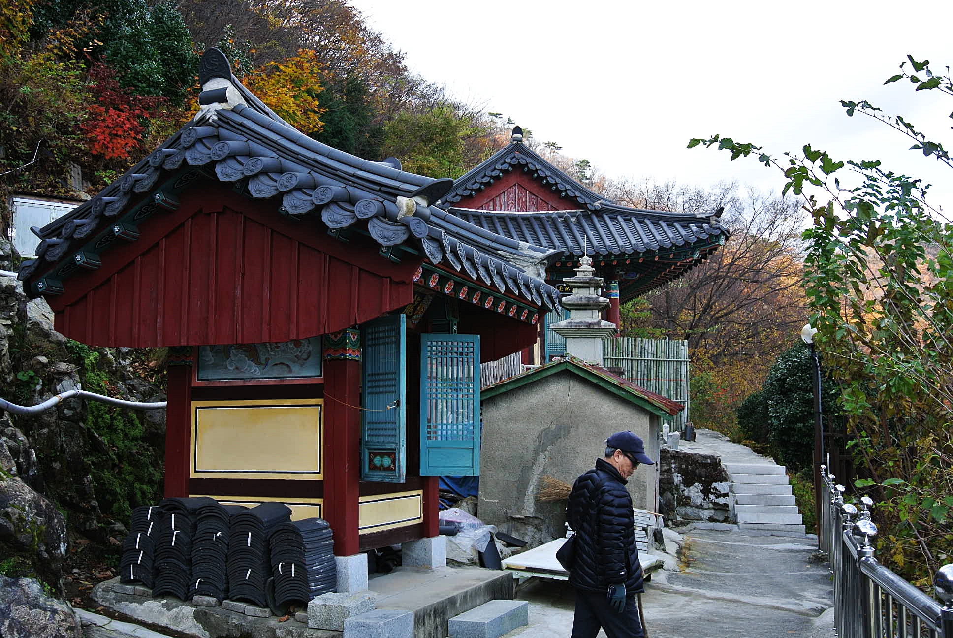 가을색으로 물든 그곳을 걸어서 내려가는데, 척판암 주지스님께서 힘겹게 오르시고 계신다