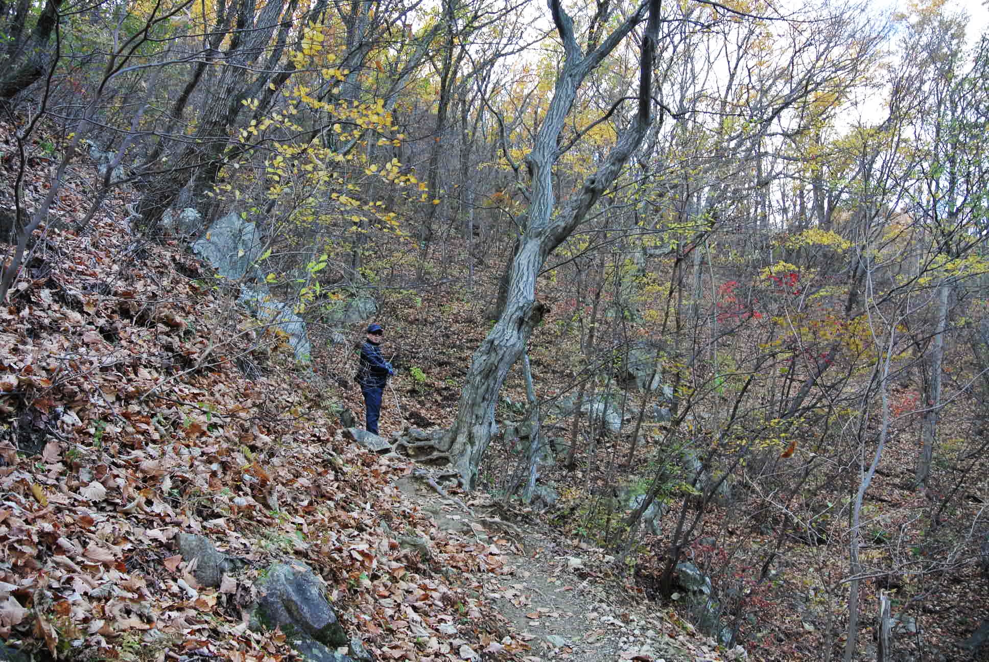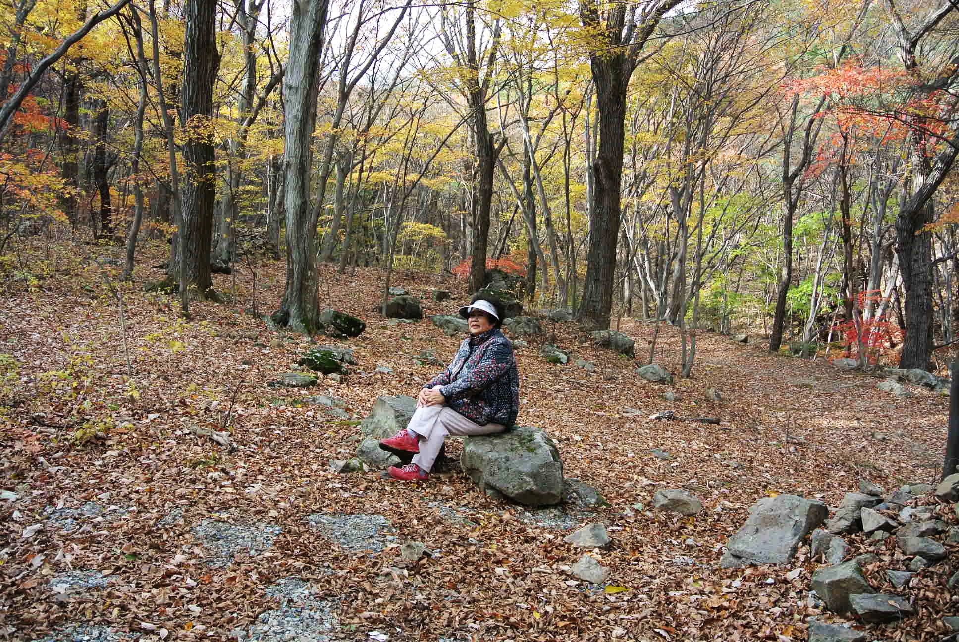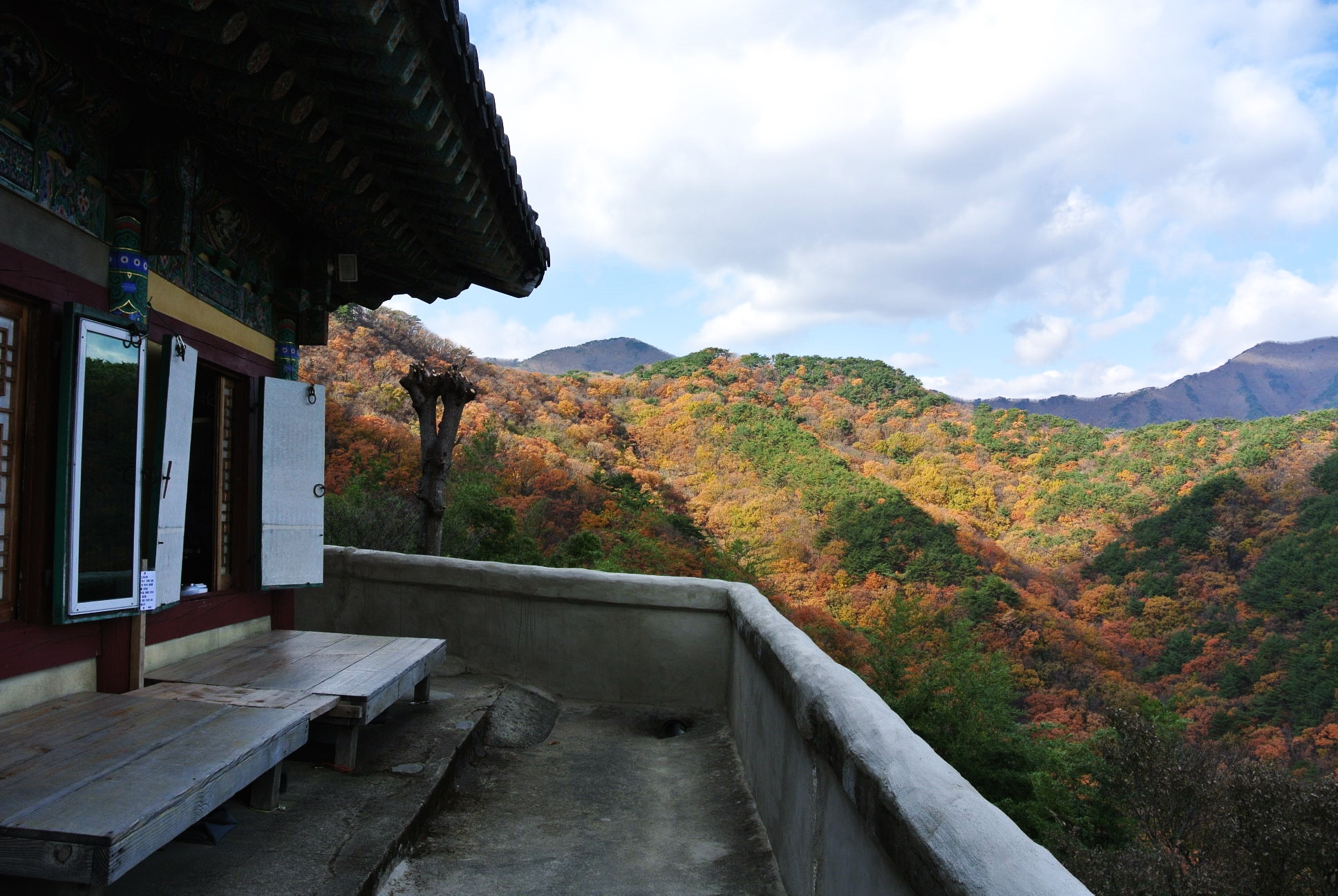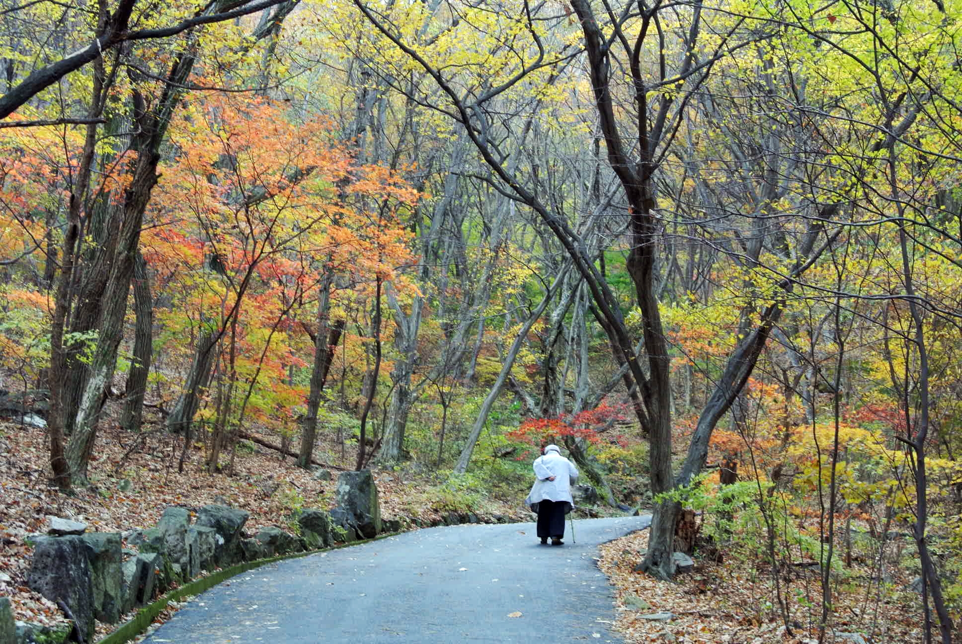 가을색으로 물든 그곳을 걸어서 내려가는데, 척판암 주지스님께서 힘겹게 오르시고 계신다