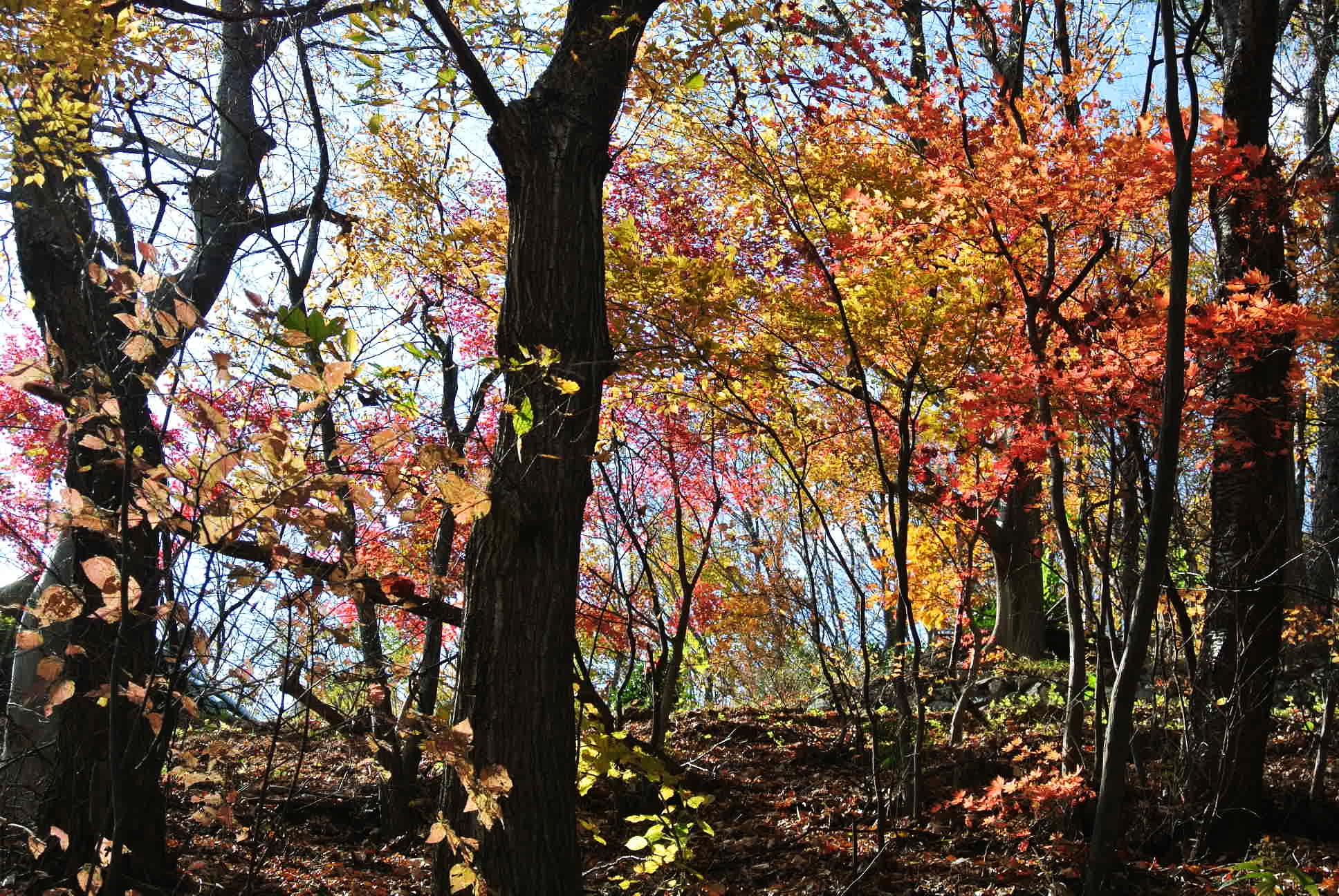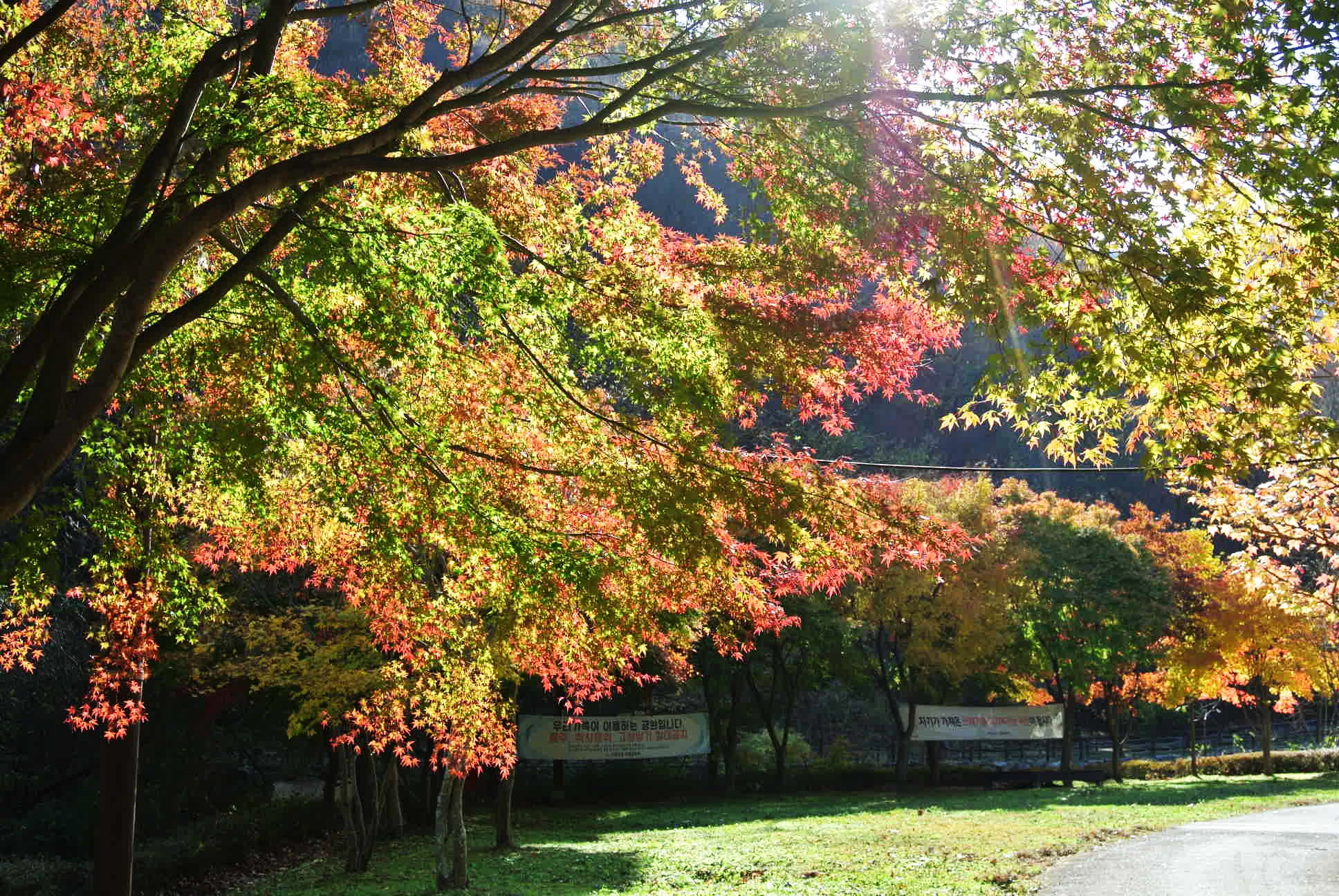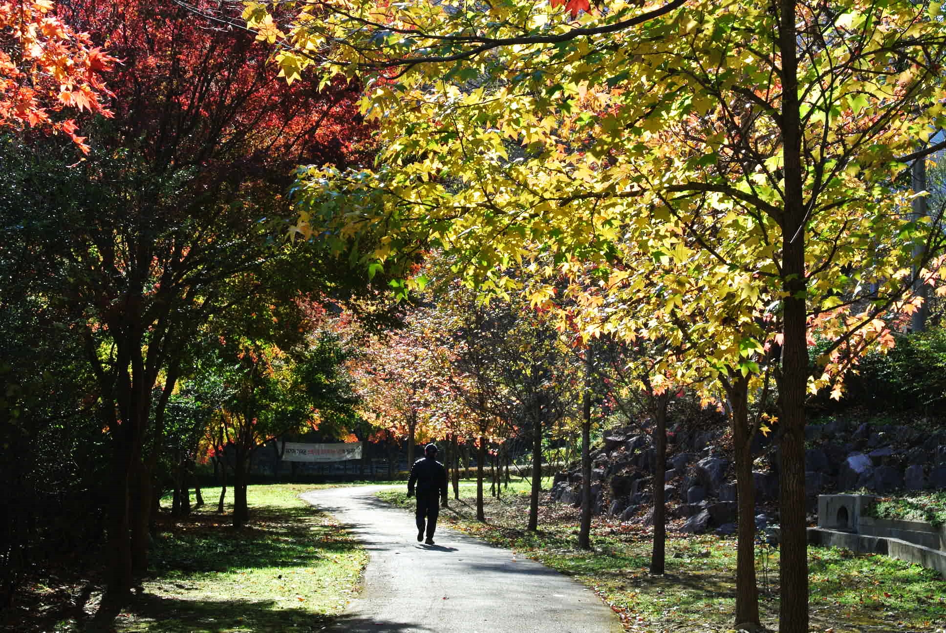 반딧불이공원 단풍이 햇살받아 맑게 빛난다