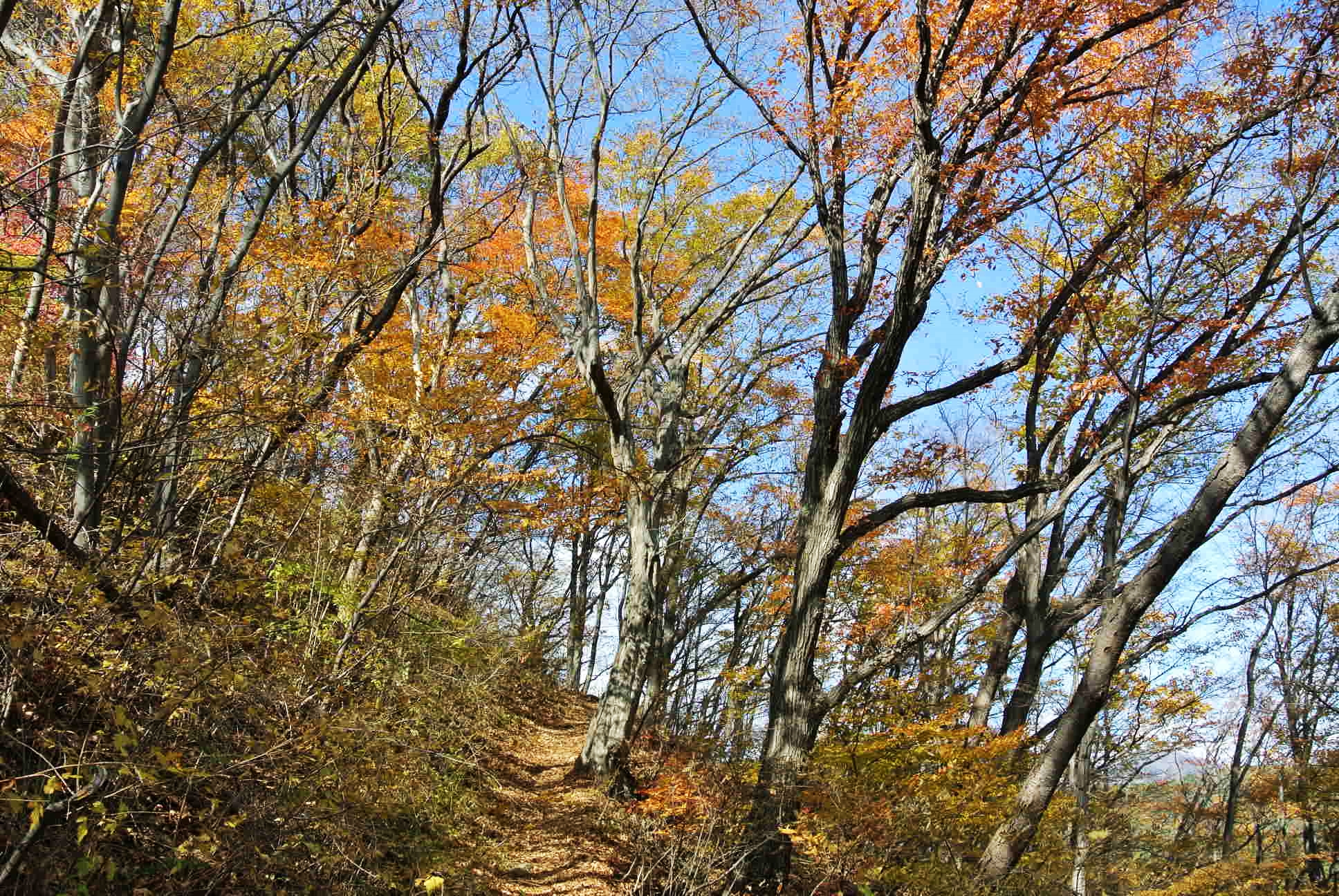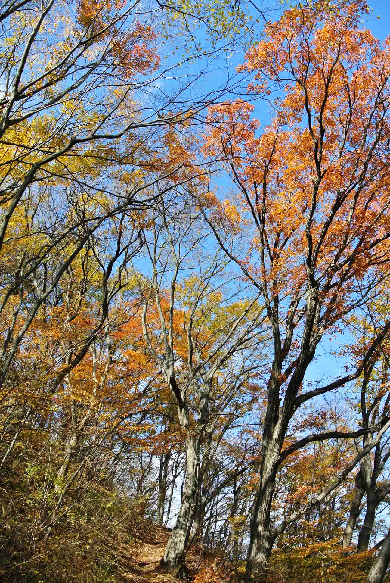 단풍나무 사이로 난 오솔길을 걸어가는데