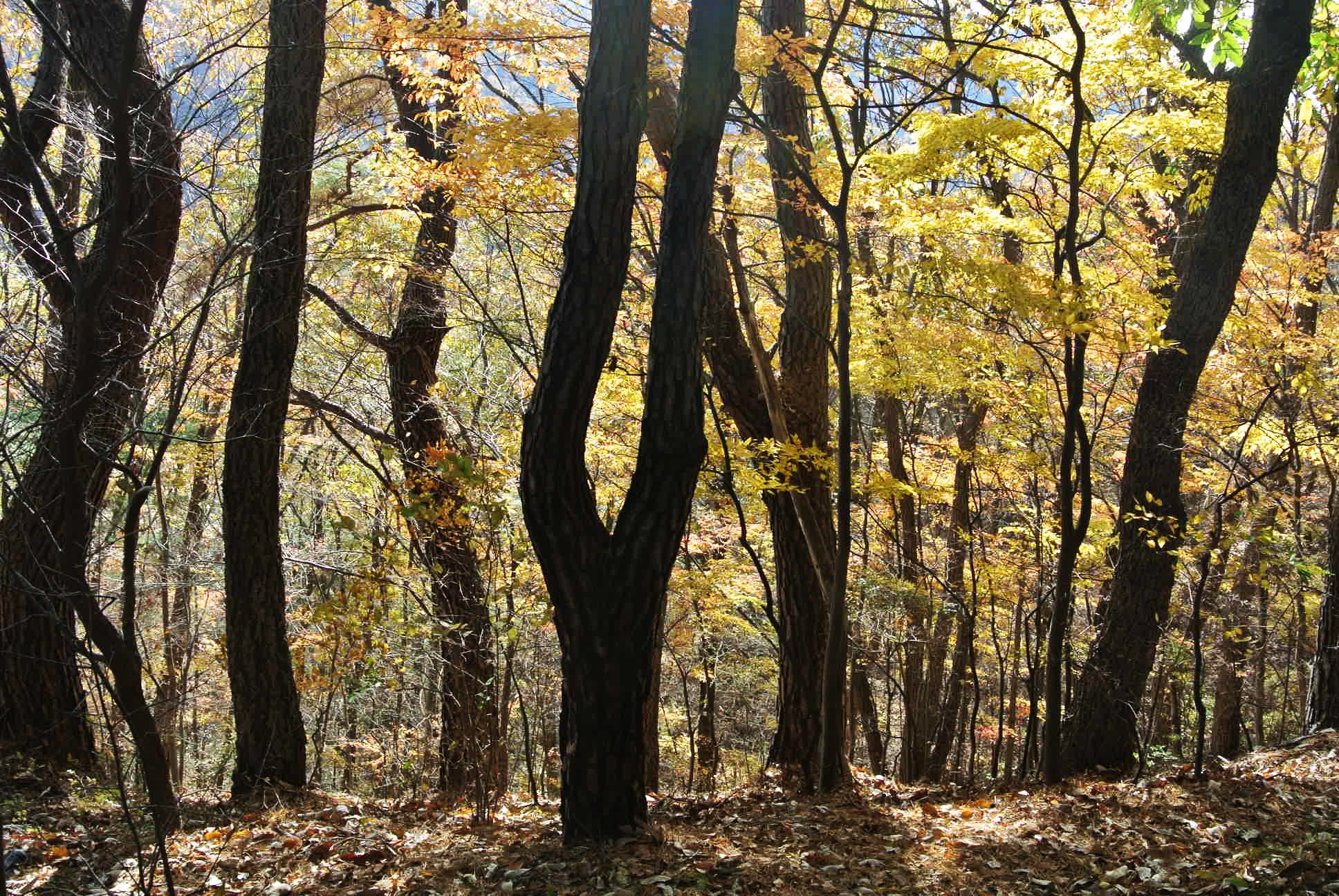 그곳에도 햇살이 투영되어 나뭇잎이 노랗고 예쁘게 물들어있어