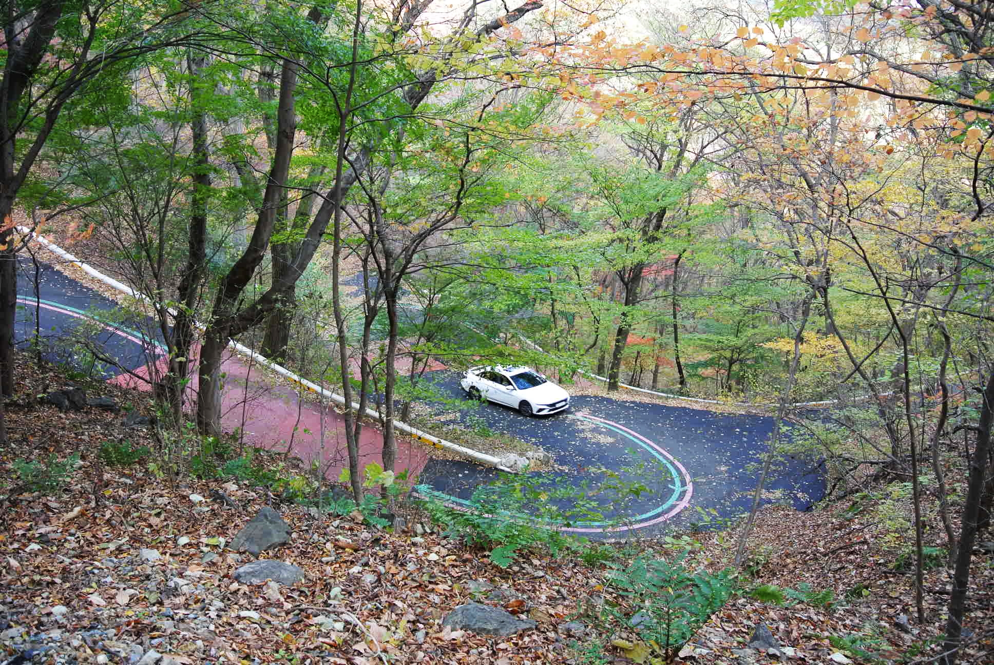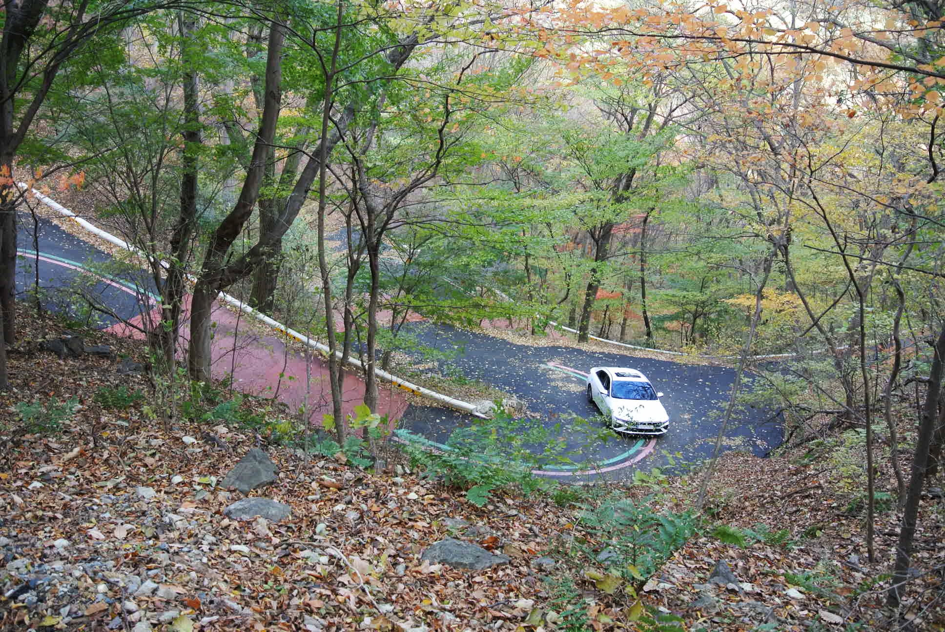 한눈에 볼수 있게 트인곳은 아니지만 길은 가파르게 오르면서 구불구불해서 차가 올라가기 힘들어 한다.