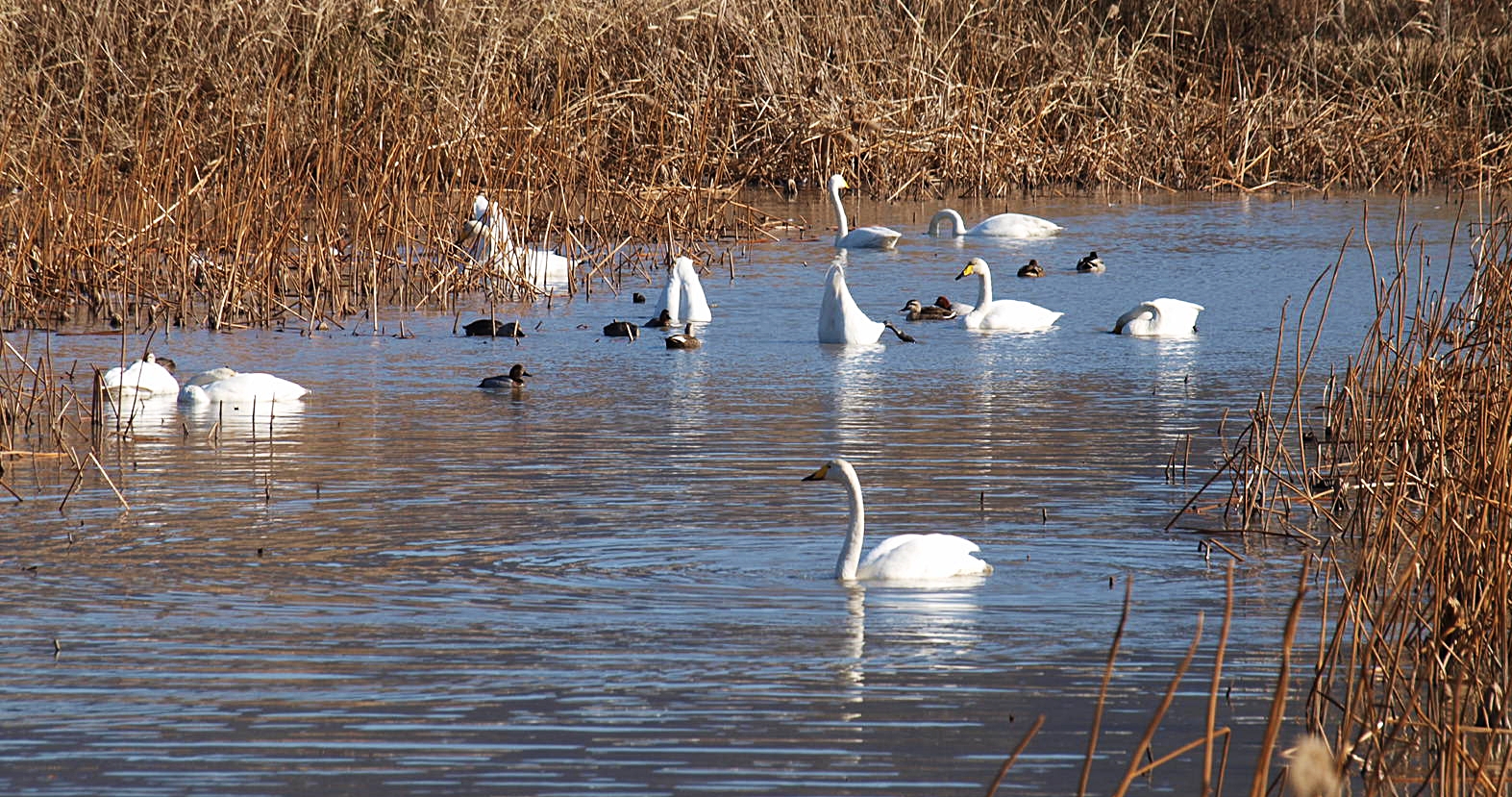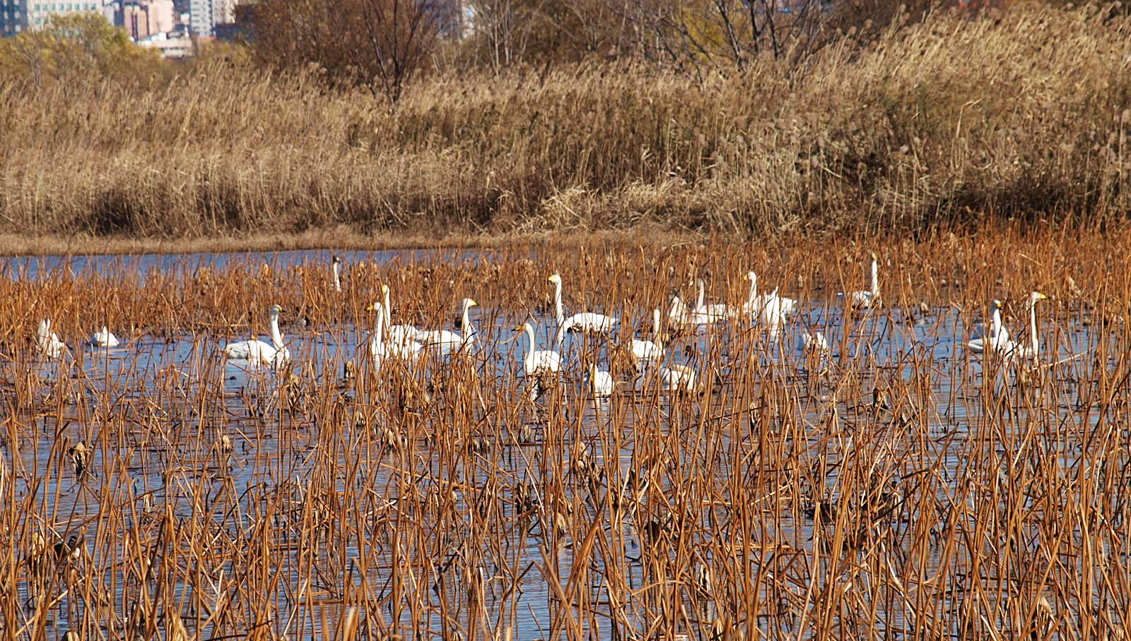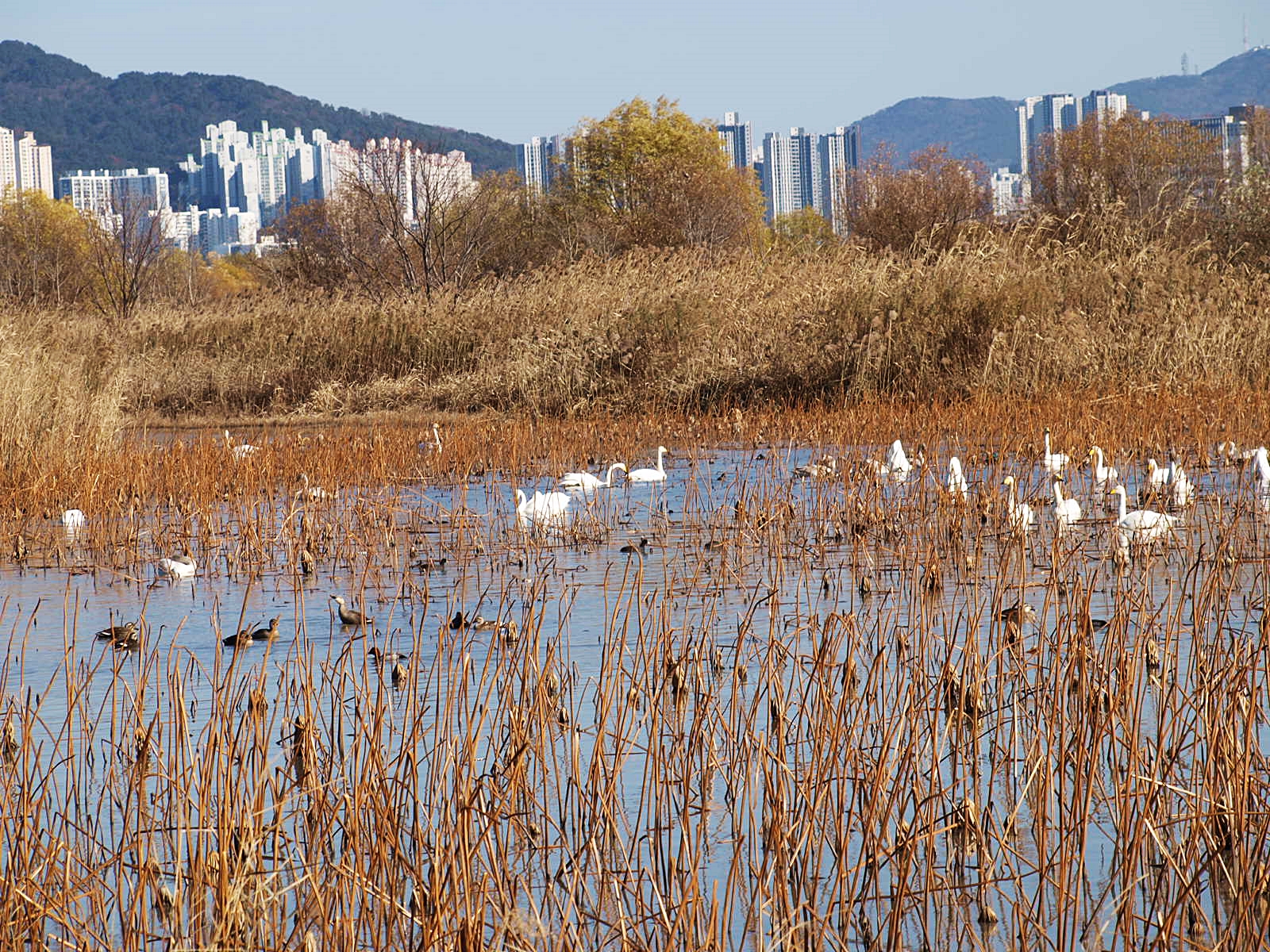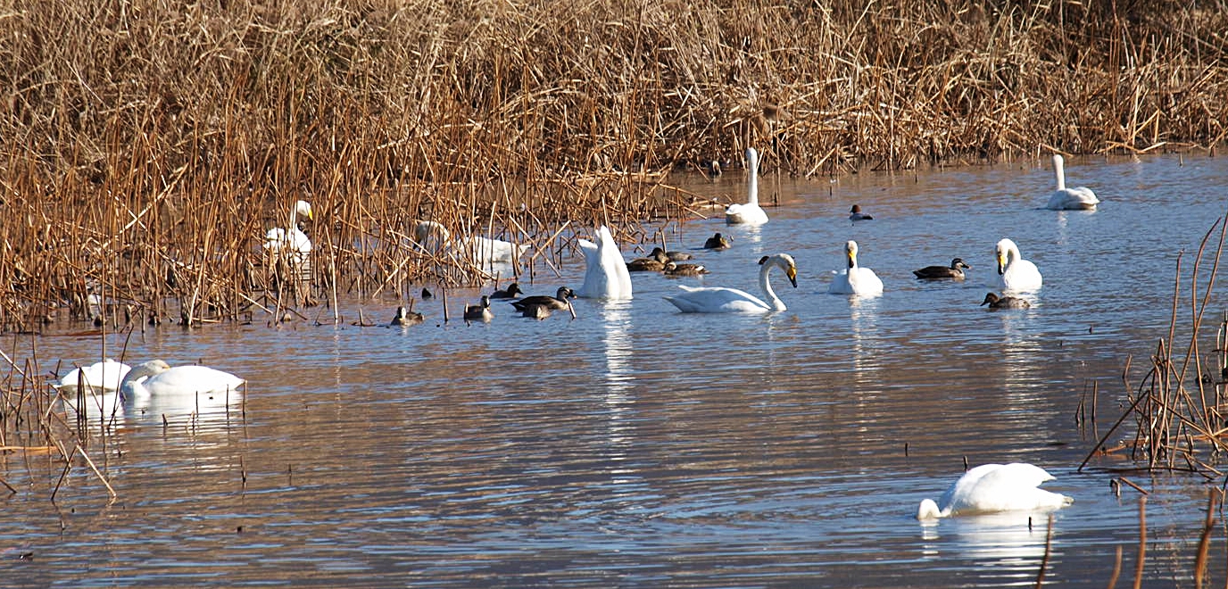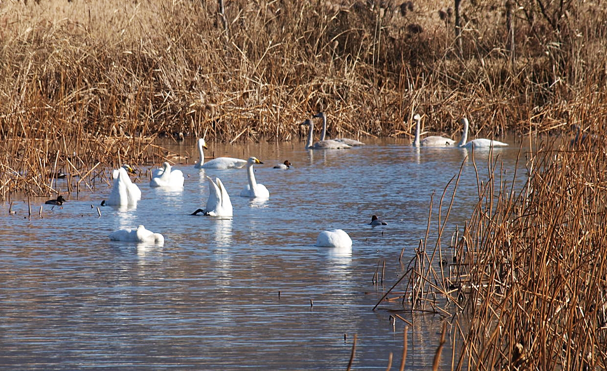 맥도생태공원에서 얻은 수확은 고니의 무리들이었다