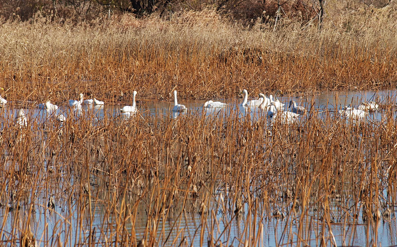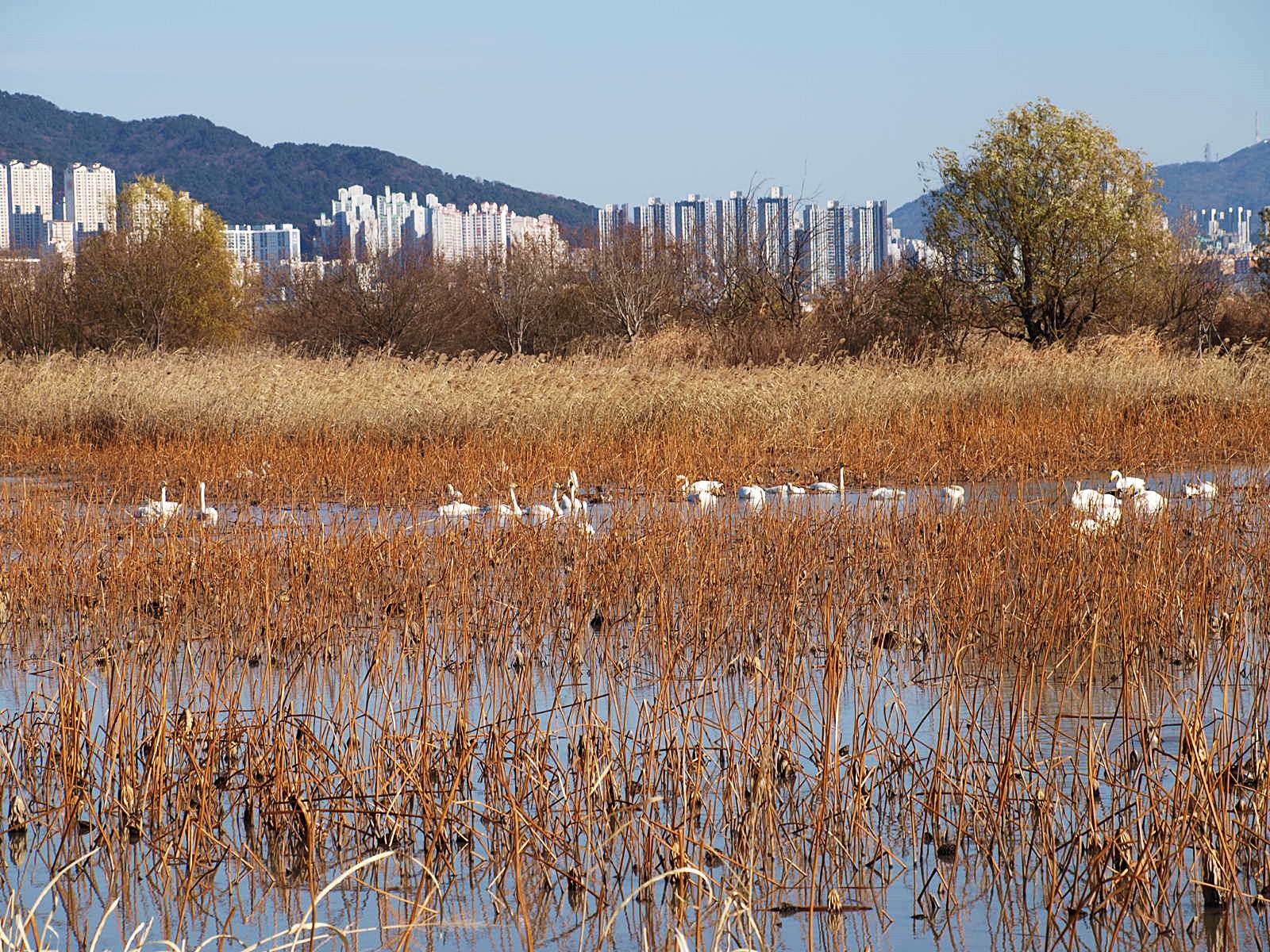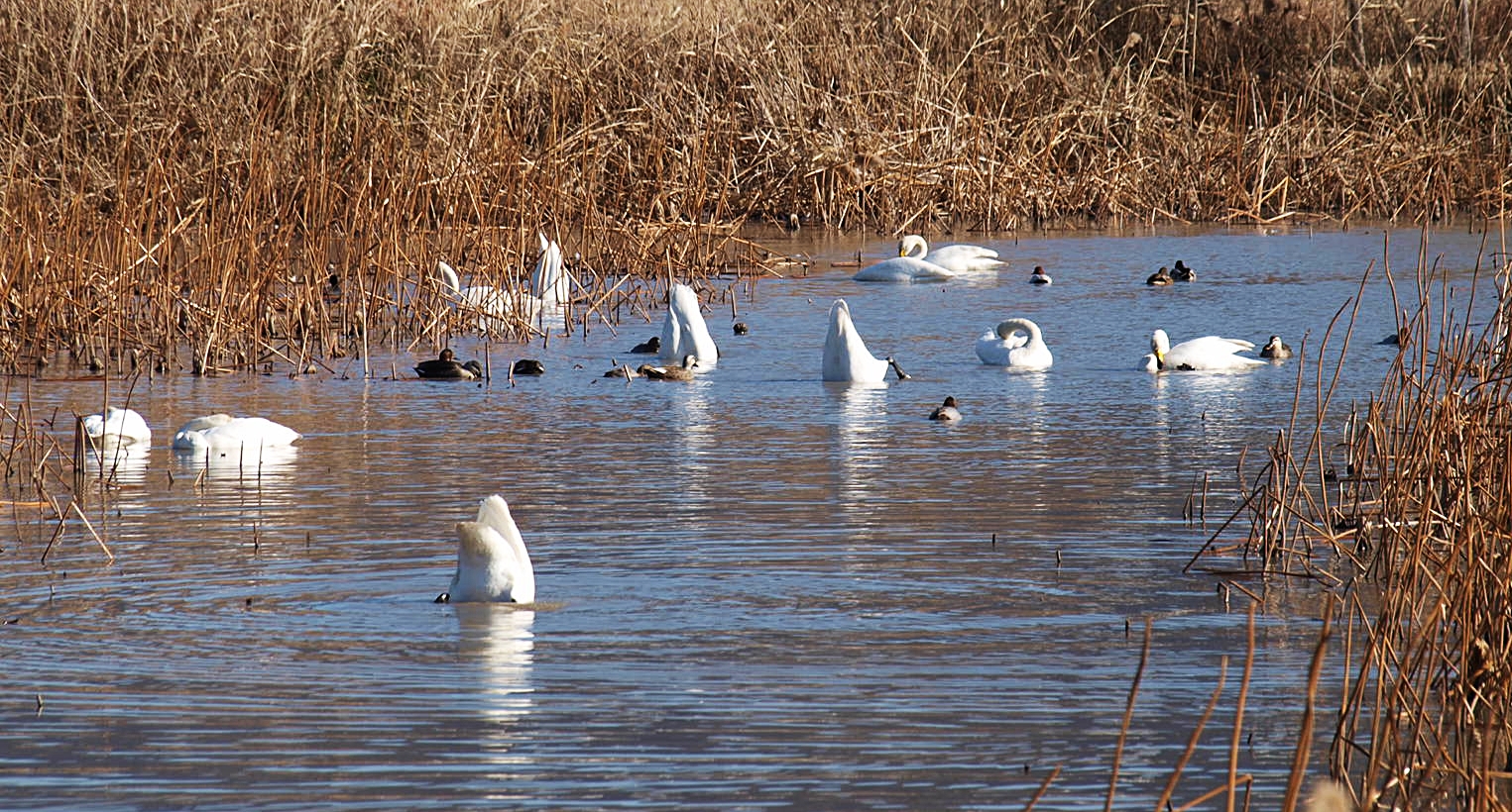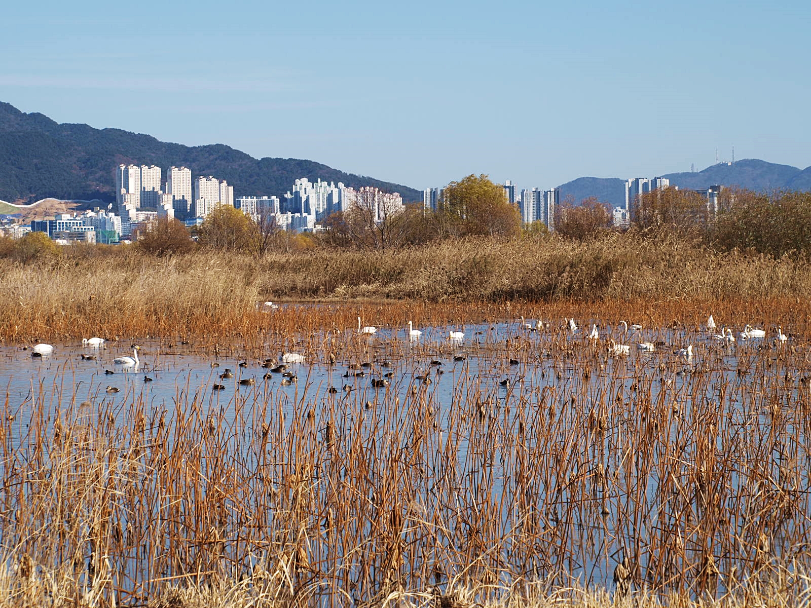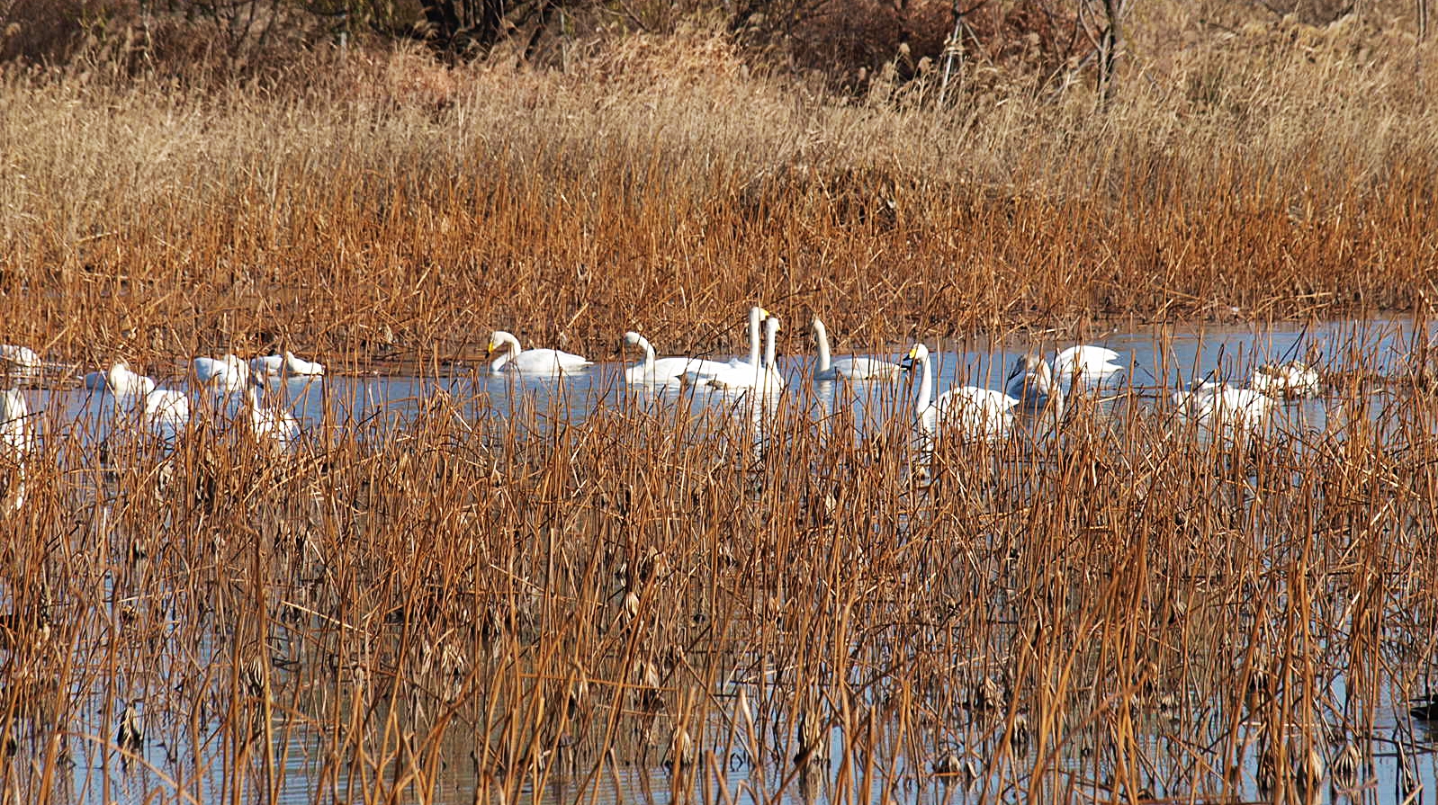맥도생태공원에서 얻은 수확은 고니의 무리들이었다