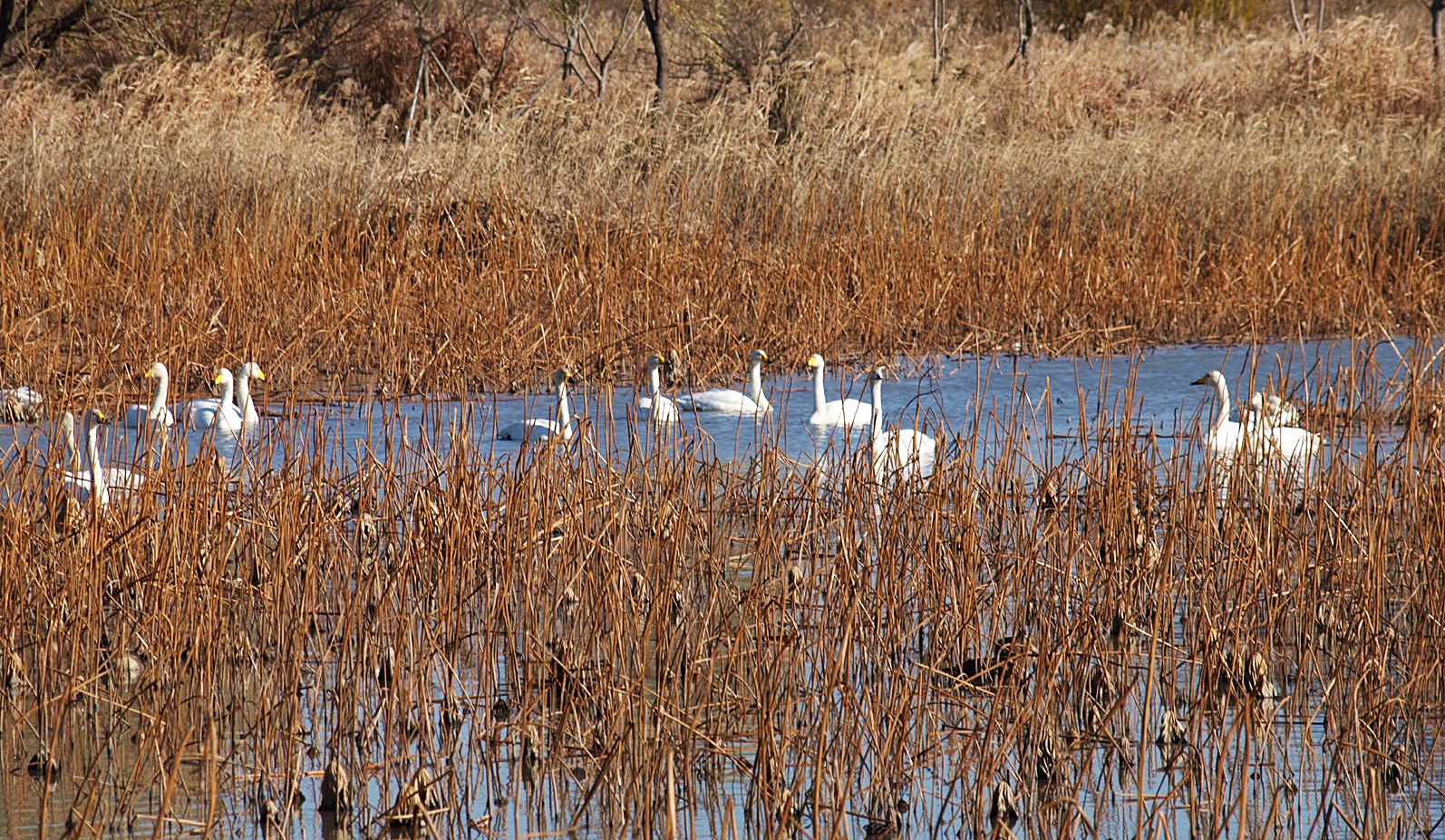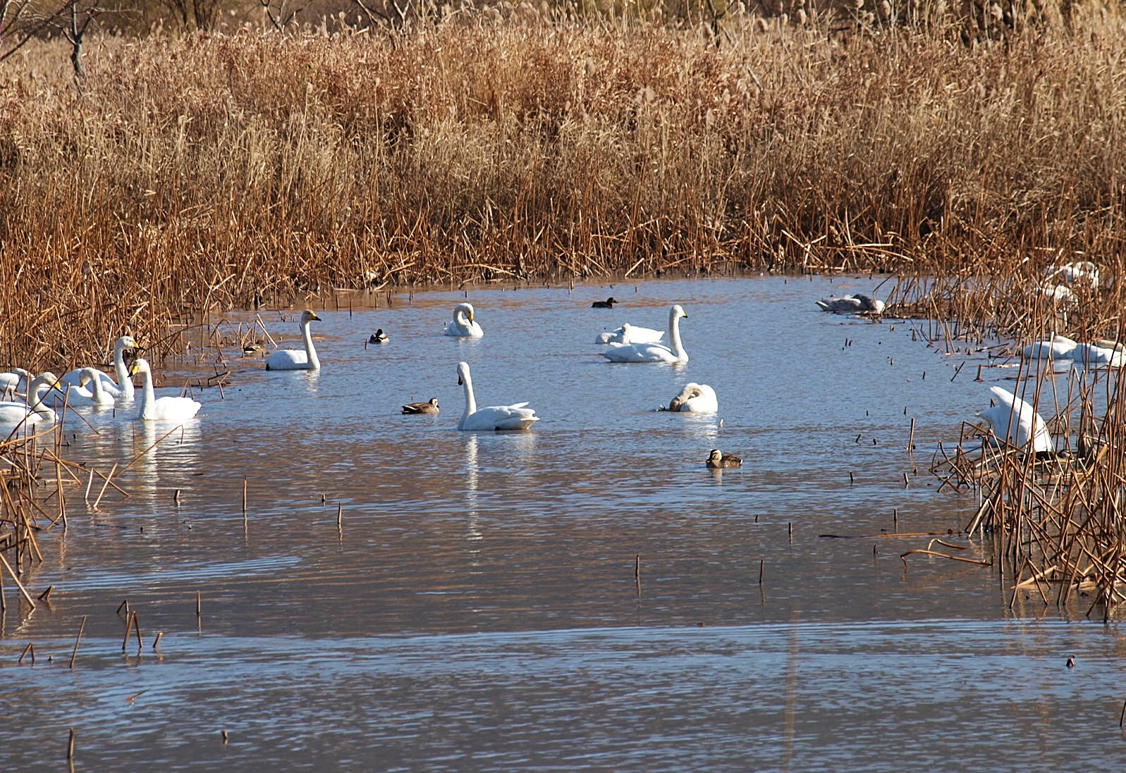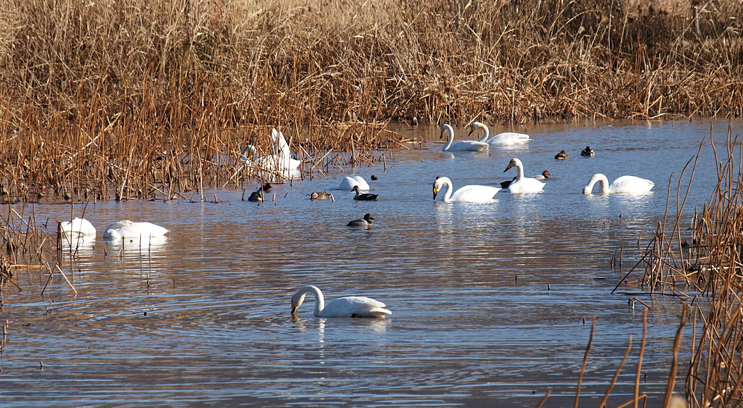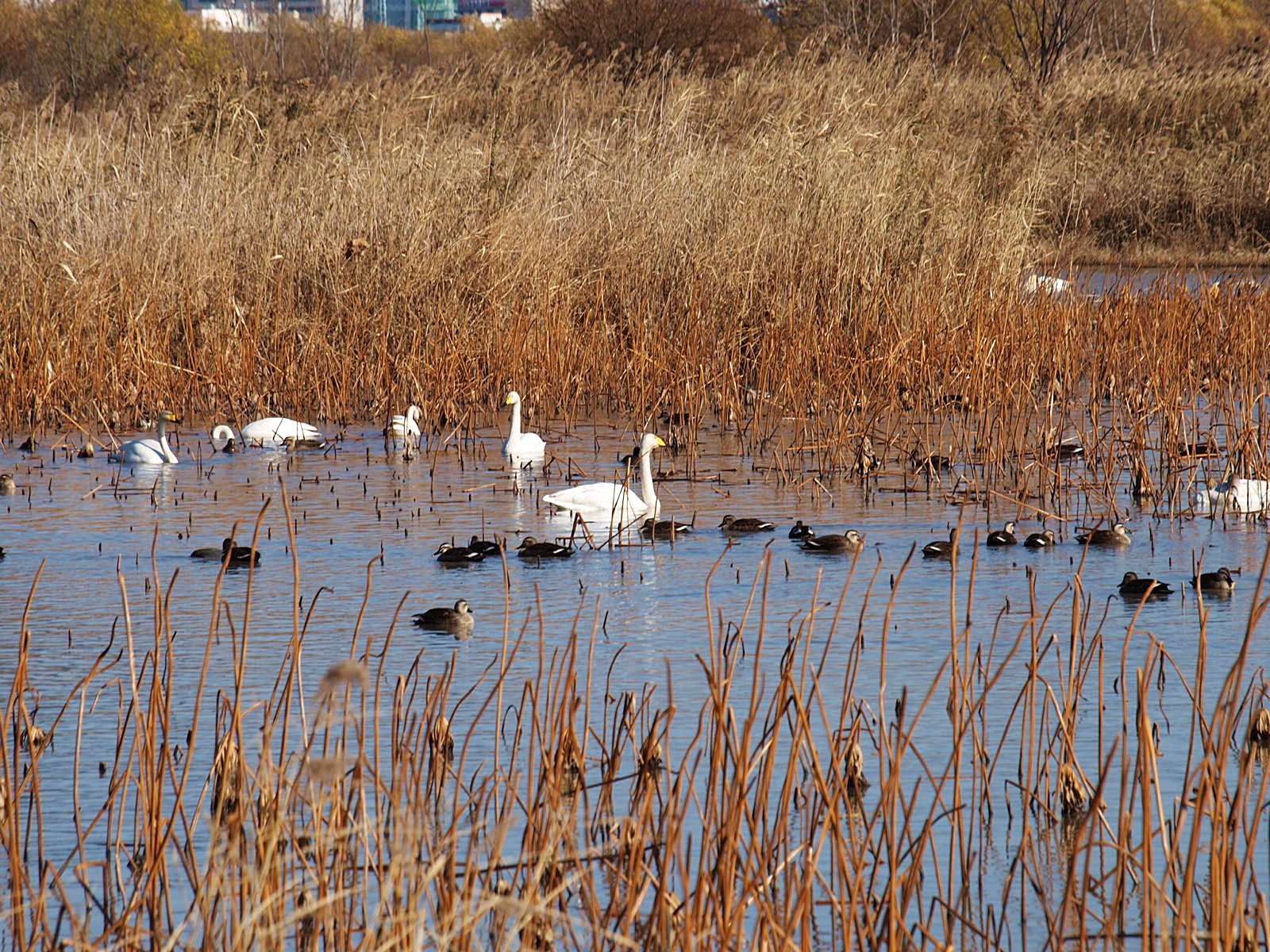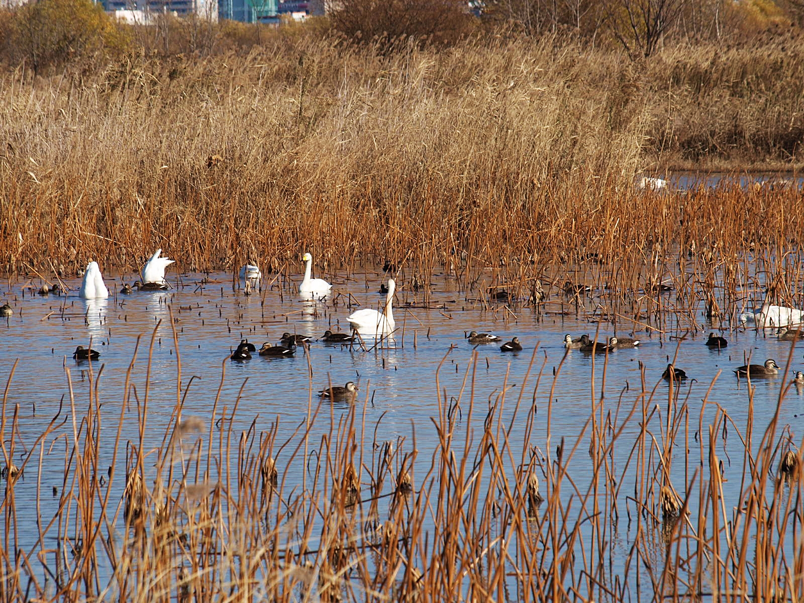 맥도생태공원에서 얻은 수확은 고니의 무리들이었다