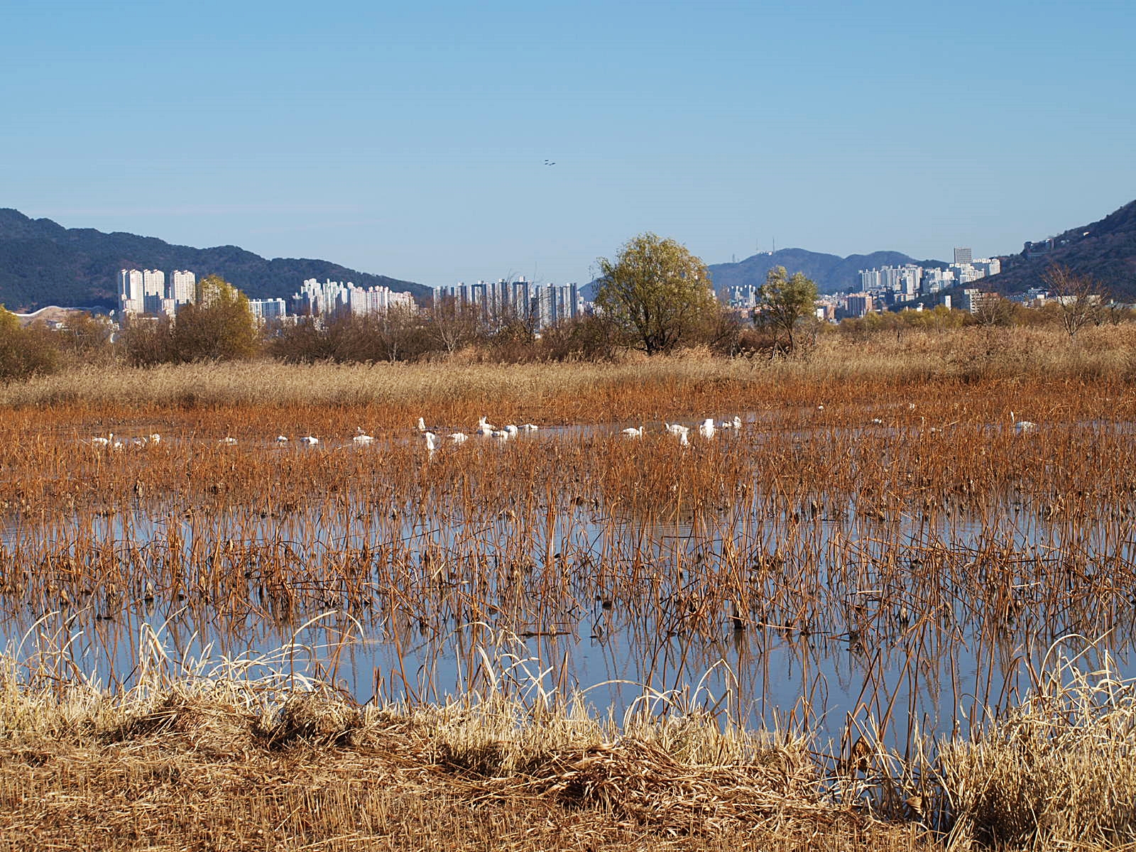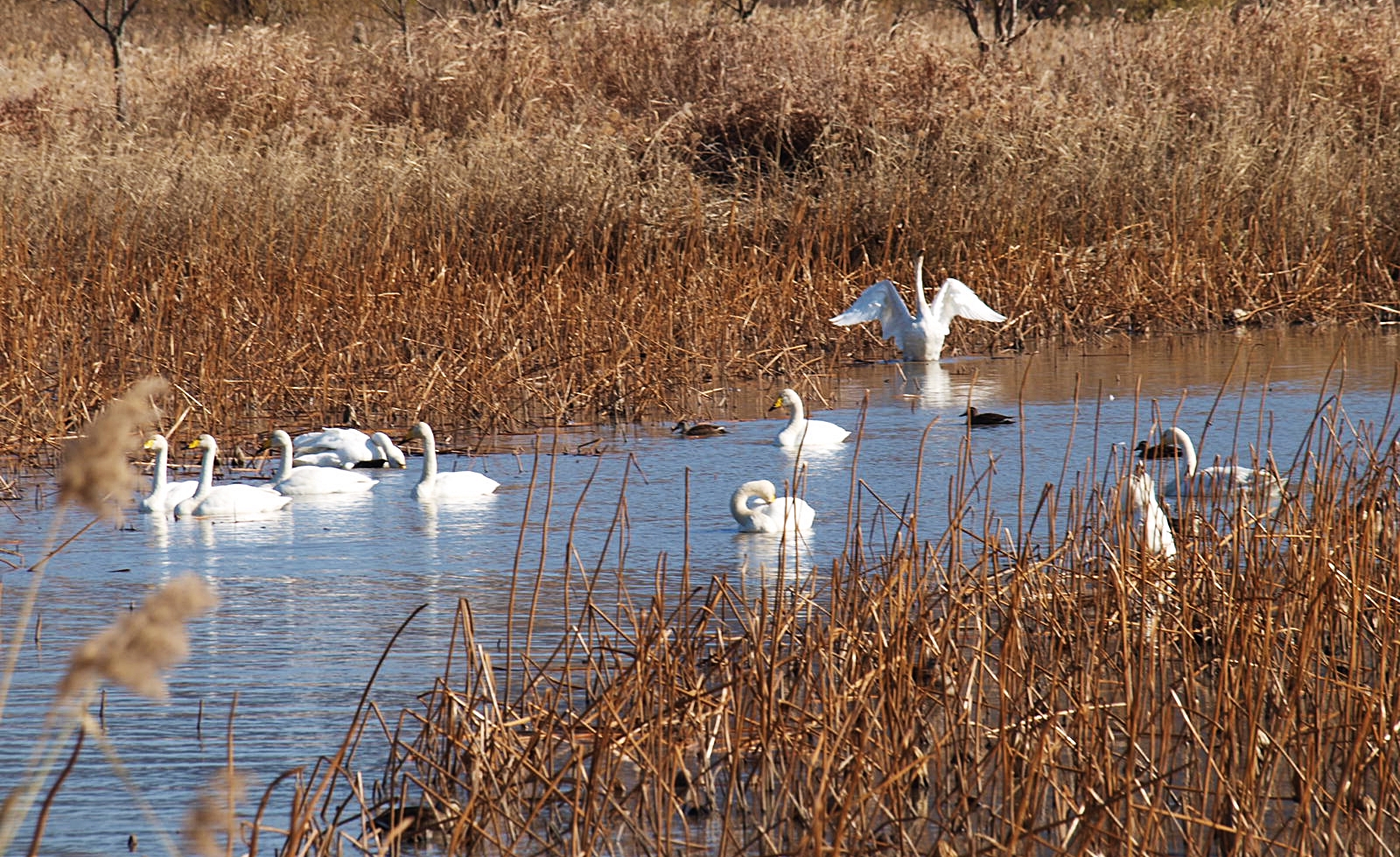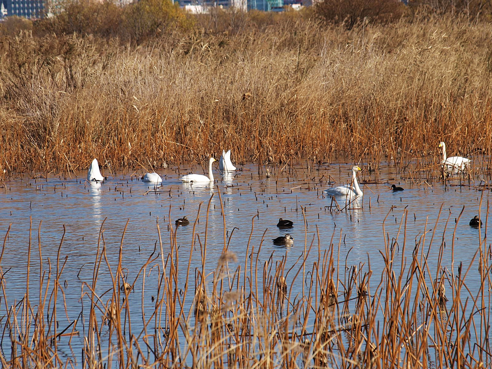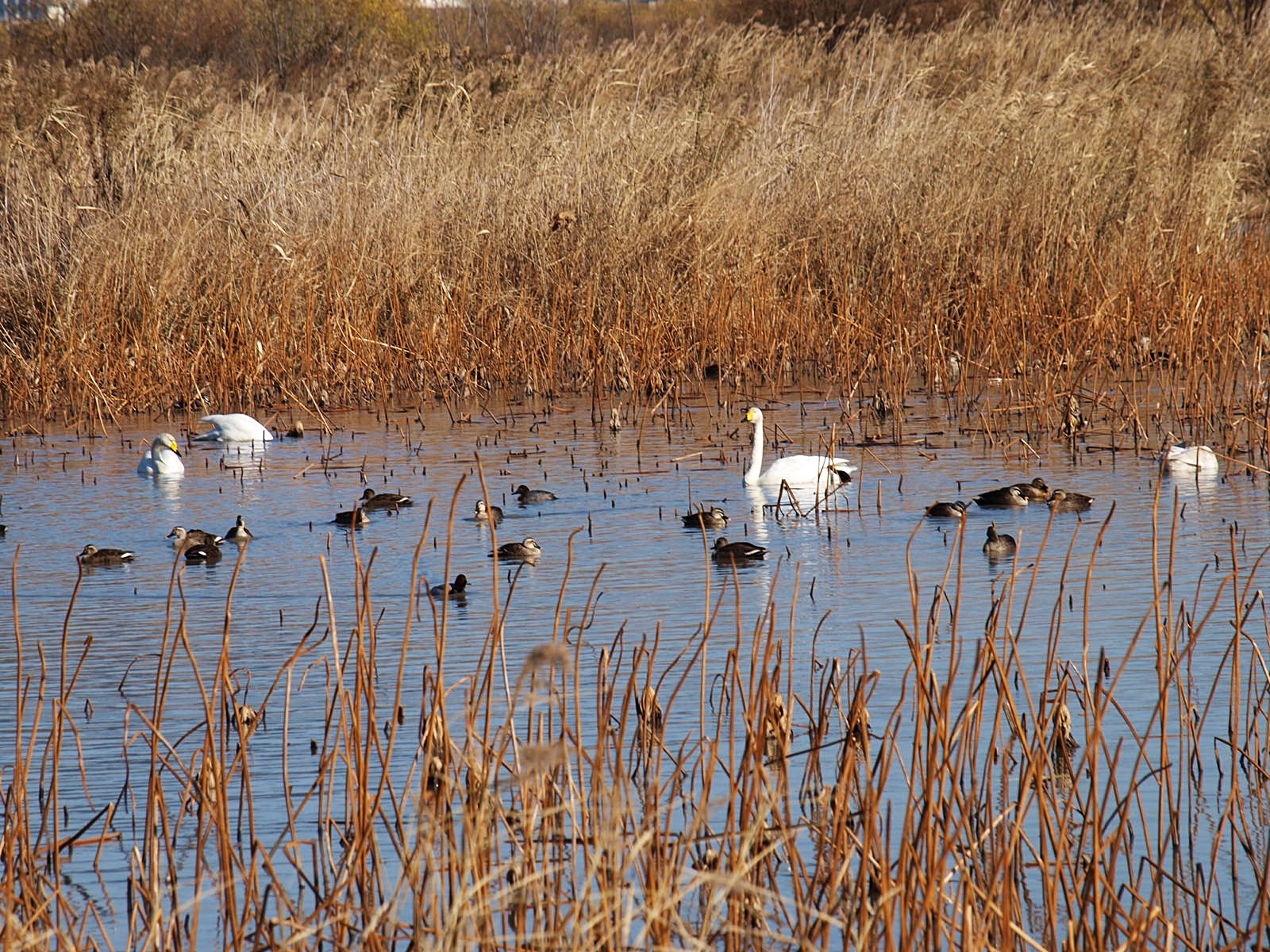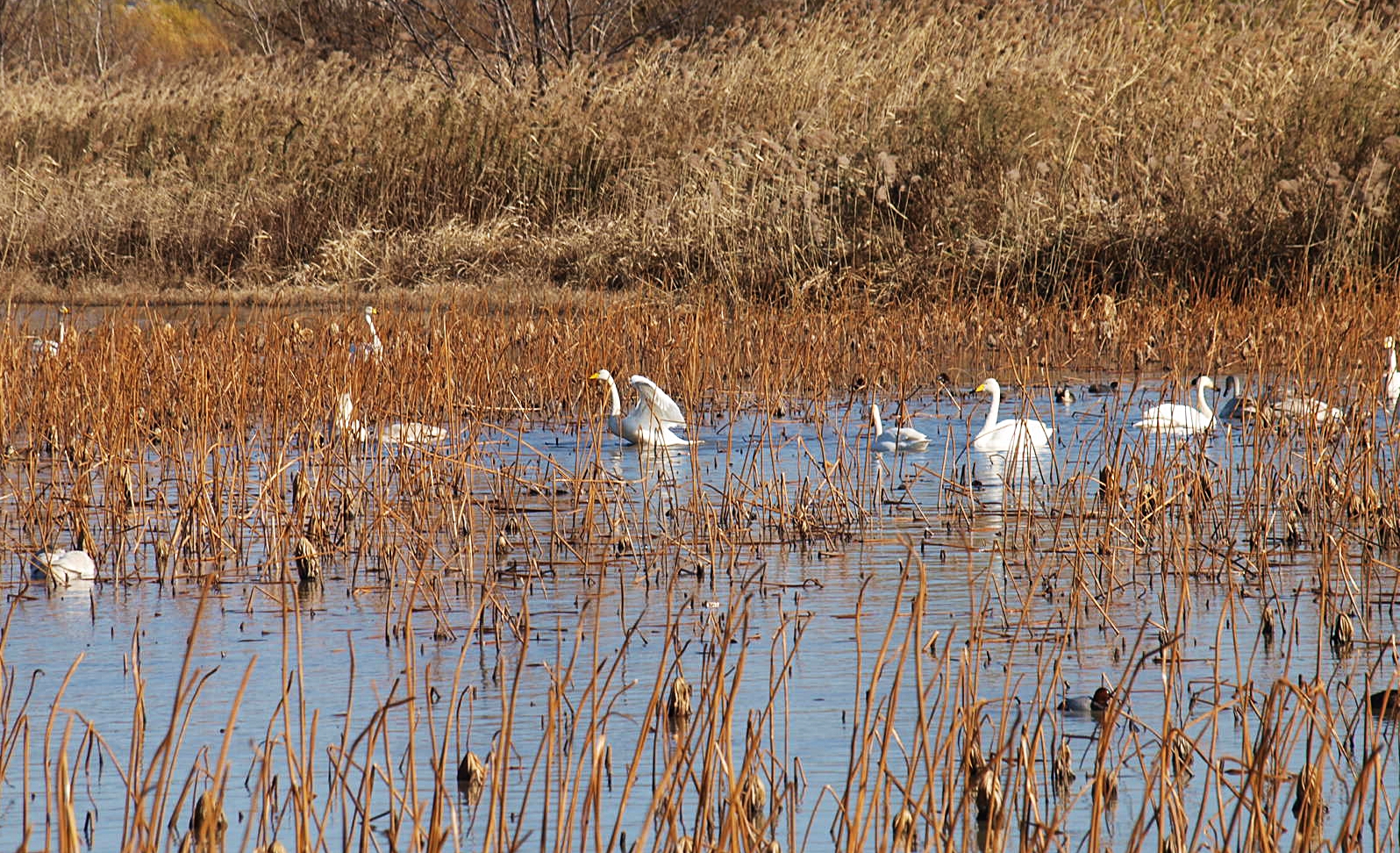 맥도생태공원에서 얻은 수확은 고니의 무리들이었다