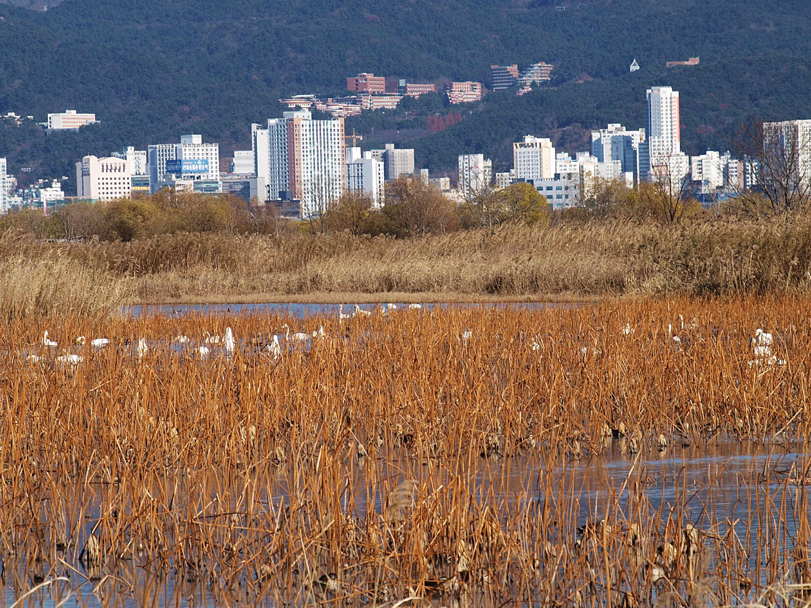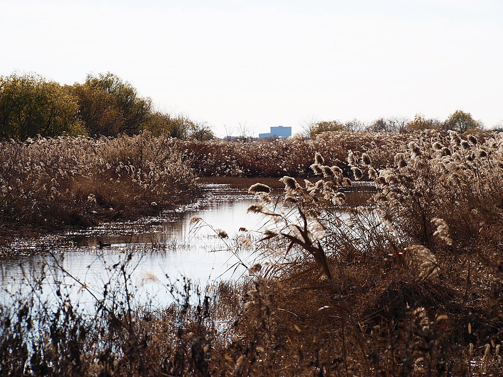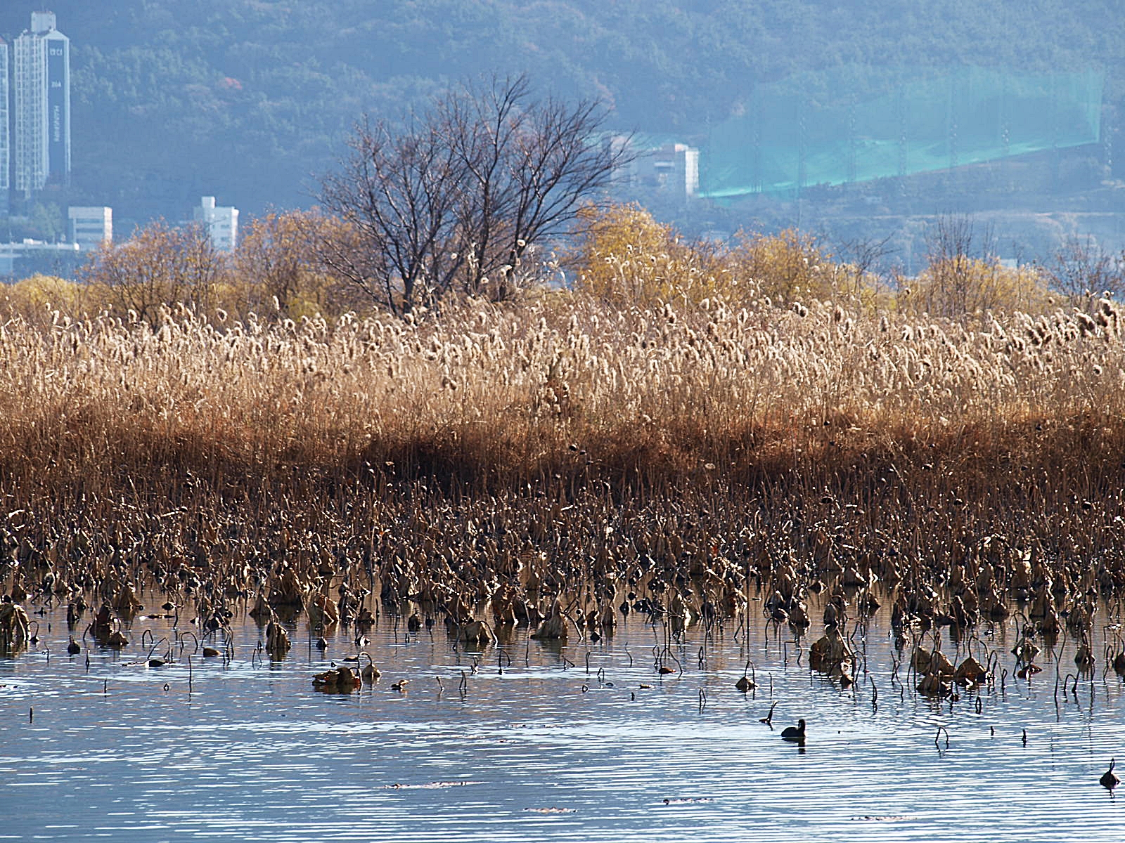 수로에 갈대숲이 형성되어 있어 줌으로 당겨 담아보고