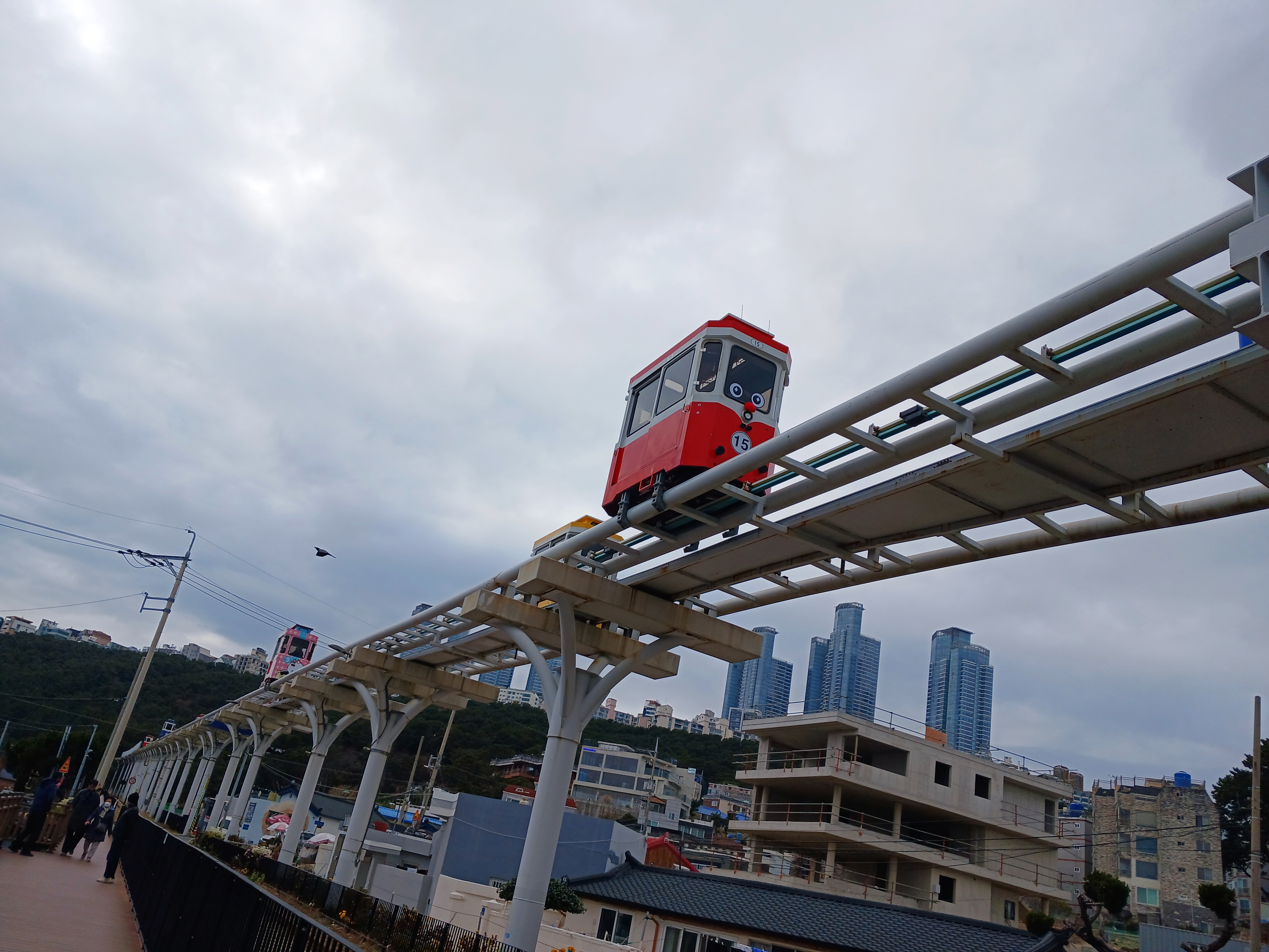 스카이캡슐과 해변열차가 동시에 지나가고