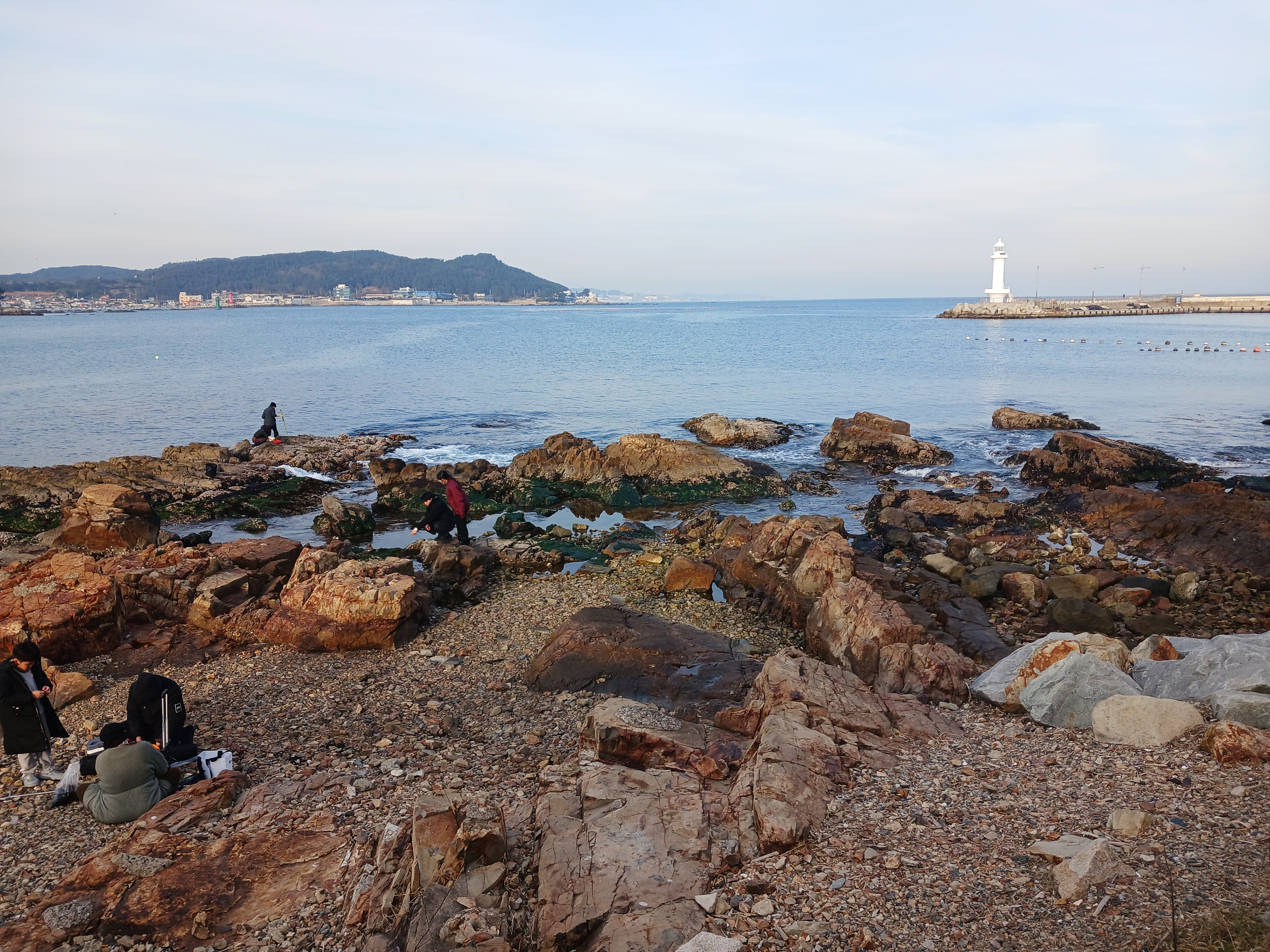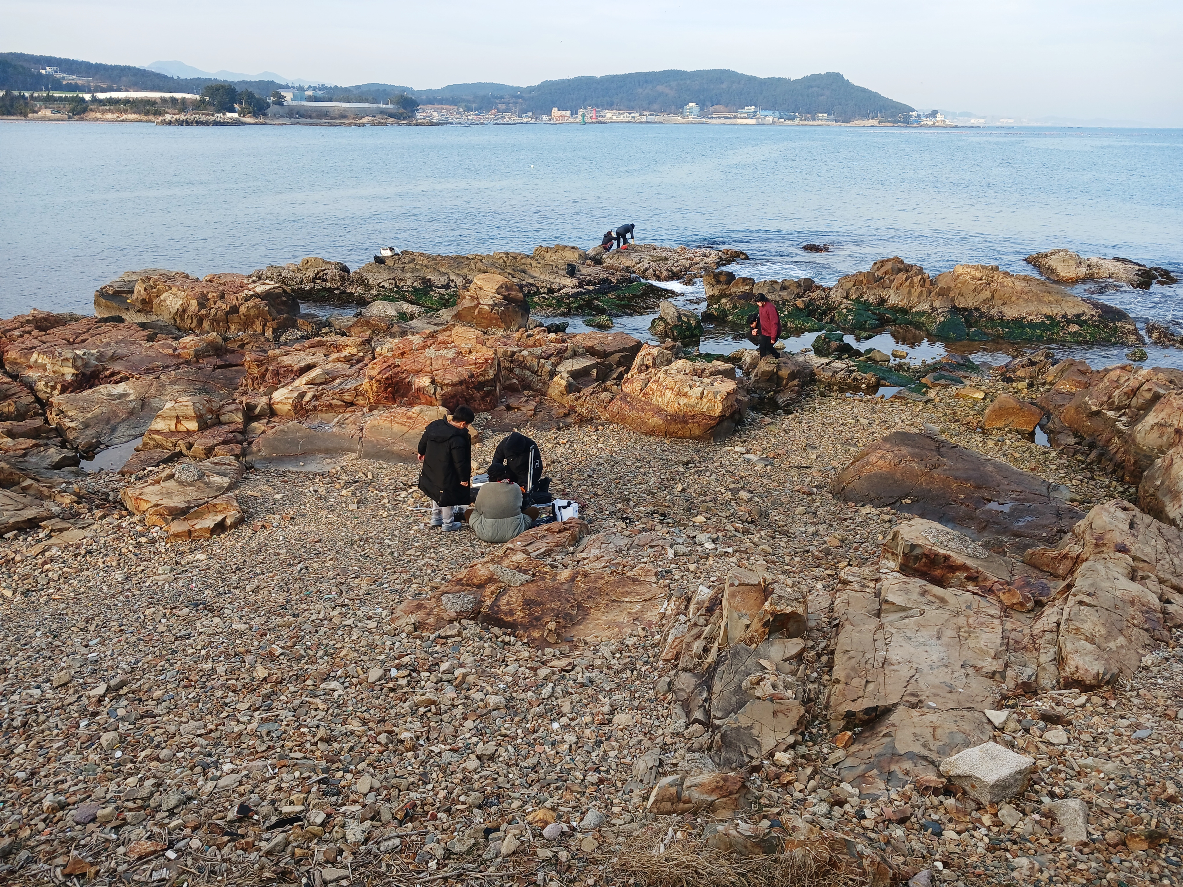 갯가에서 뭘 하시는지 사람들이 있다