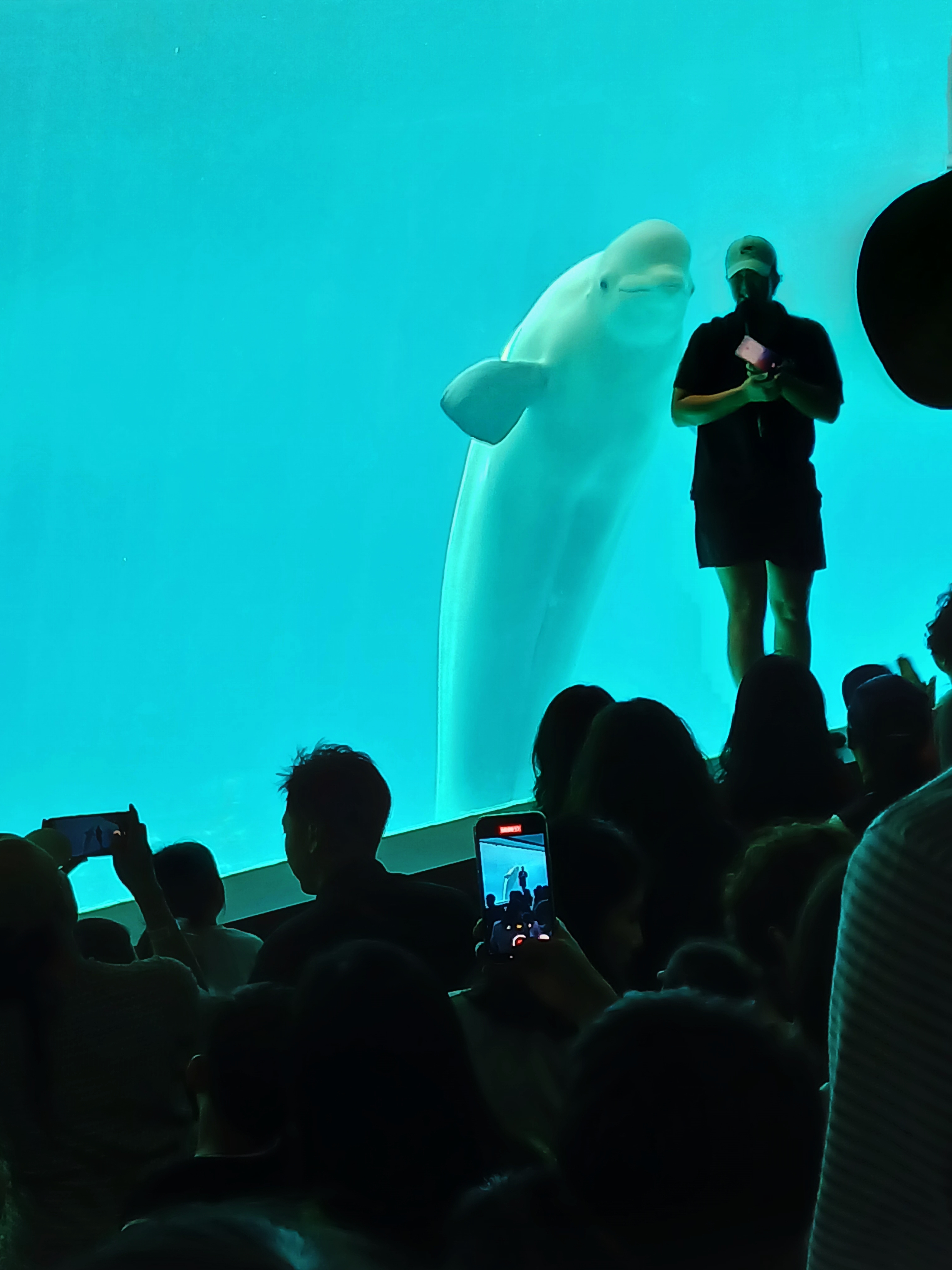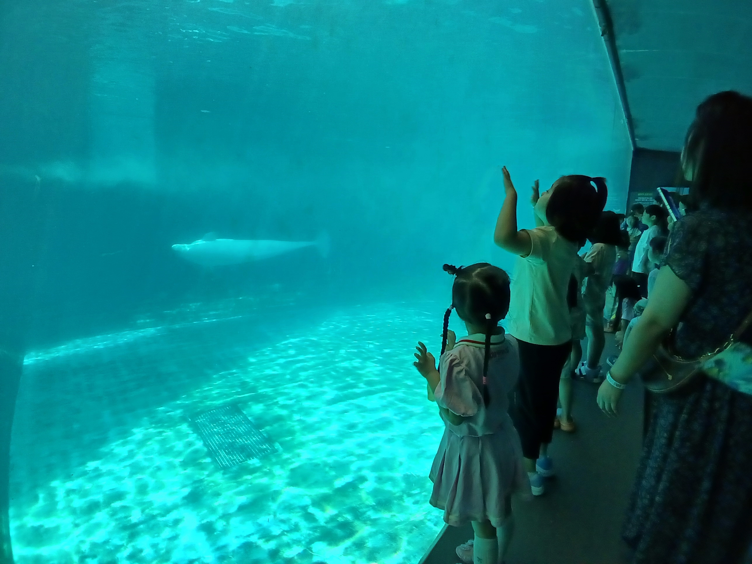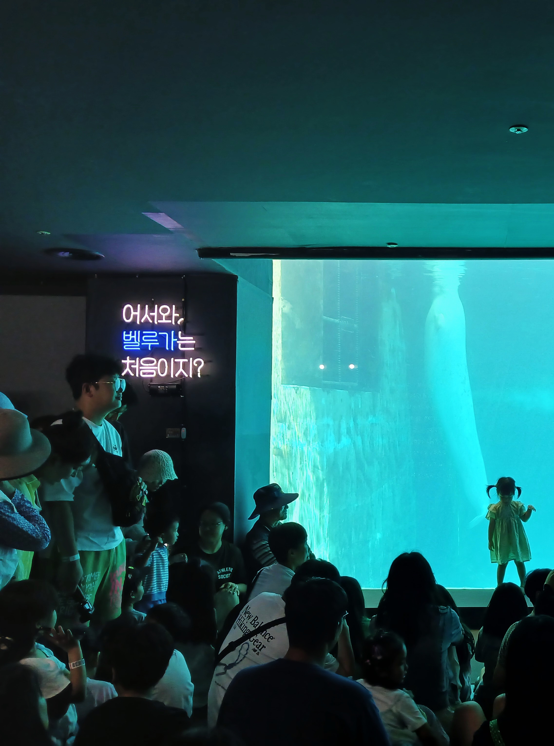 벨루가와 사진찍으려고 줄 서 있는 사람들